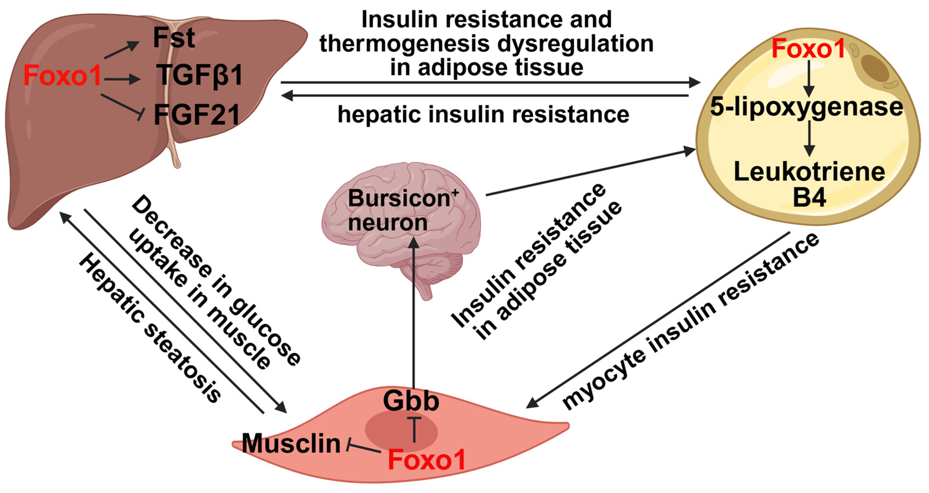 3. Foxo1 Plays a Key Role in Integrating Inter-Organ Communication