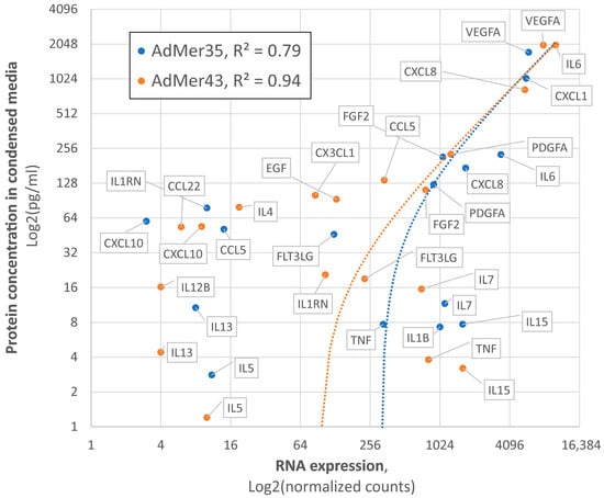 2.4. Cytokine Concentrations in AdMer35 and AdMer43 Cell Media