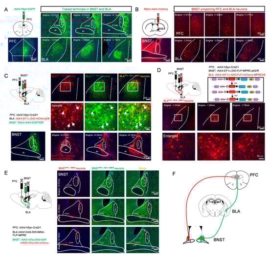 The following supporting information can be downloaded at: https://www.mdpi.com/article/10.3390/cells15020116/s1, Figure S1: Viral Injection and Expression Verification for Chemogenetic Inhibition of the BLA Relay Neurons Within the PFC → BLA → BNST Pathway; Figure S2: Viral Targeting and Expression for Chemogenetic Inhibition of the BNST Neurons Innervated by the PFC.