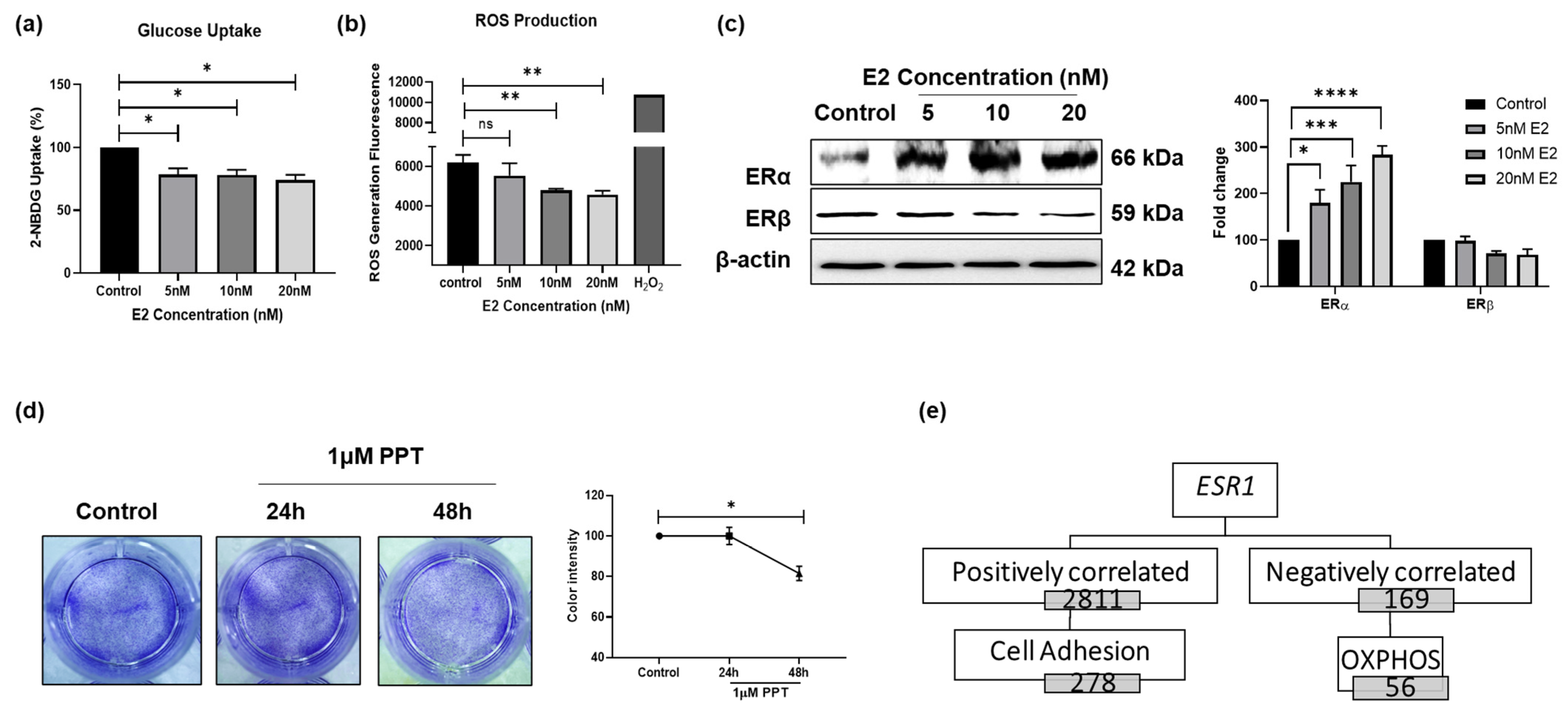 14]. However, the relationship between E2 signaling and ATP production remains poorly understood. Previous studies have shown that E2 reprograms breast cancer cell metabolism by increasing glucose uptake and lactate production, thereby enhancing tumor growth and metastasis [