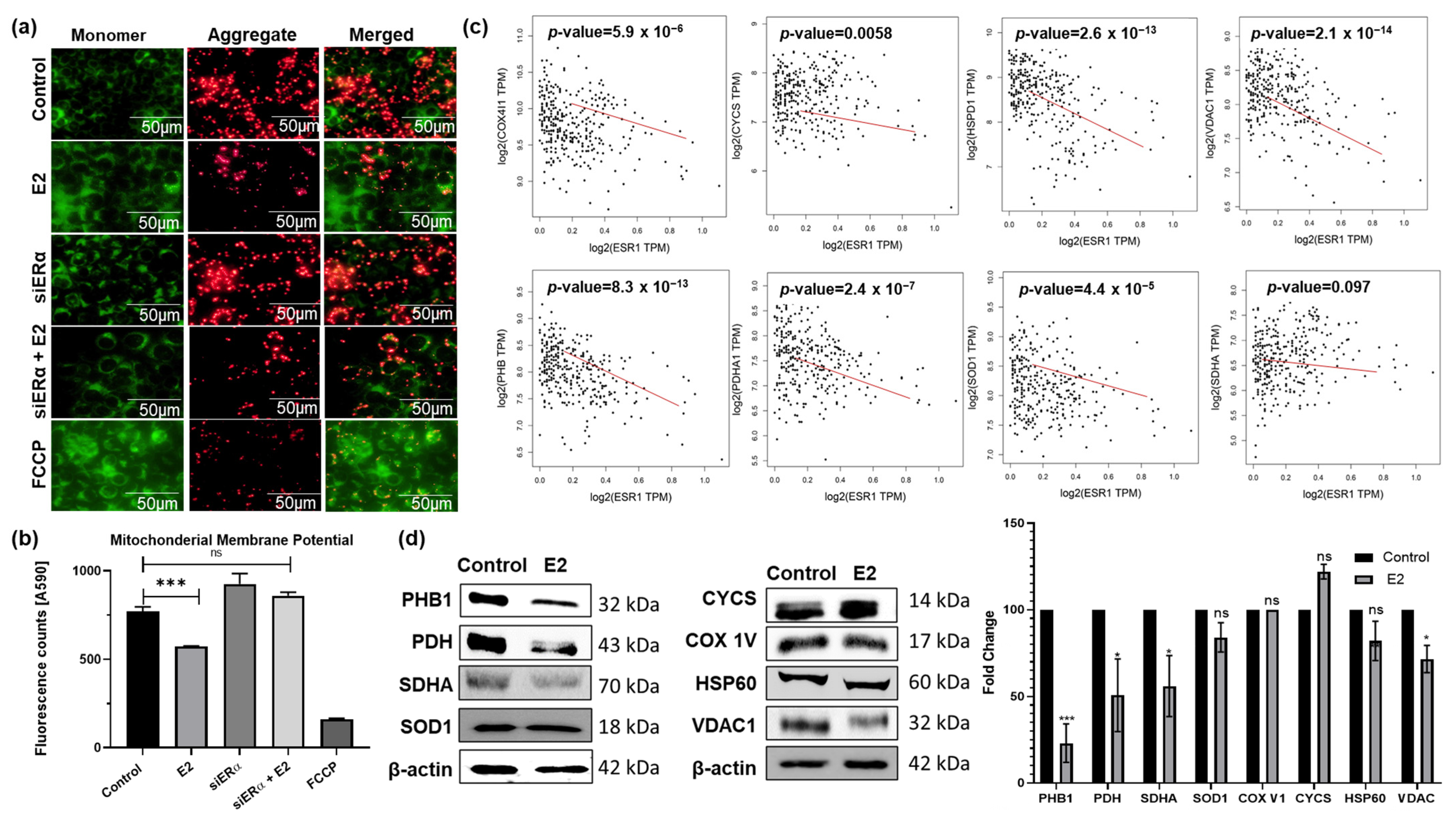 E2 signaling has been previously shown to modulate various aspects of mitochondrial function, ranging from ATP production to ROS generation, MMP, and calcium metabolism [