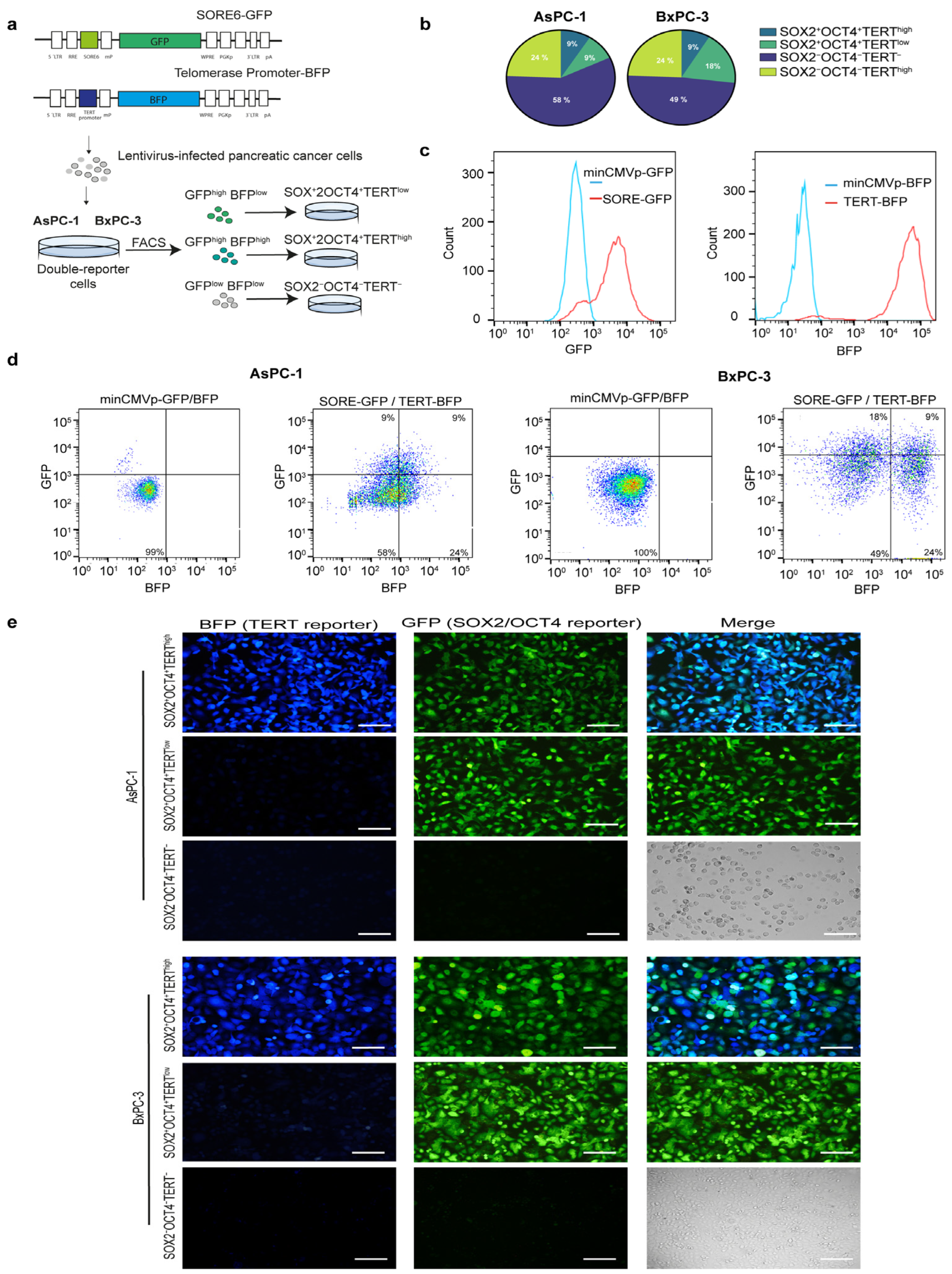 | TERT reporter | TERTpromoter-BFP | Reporter vector telomerase | Engineered |
