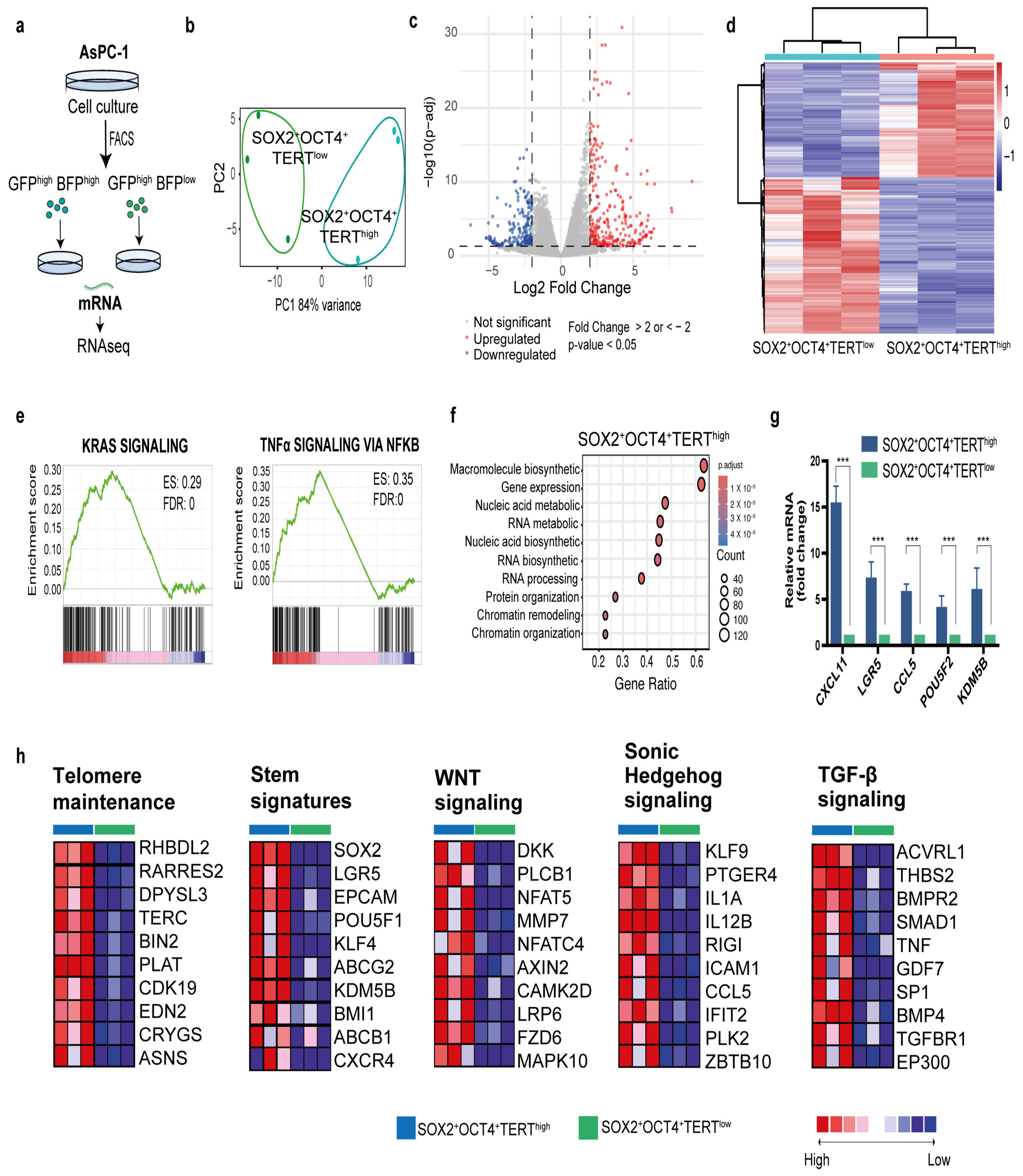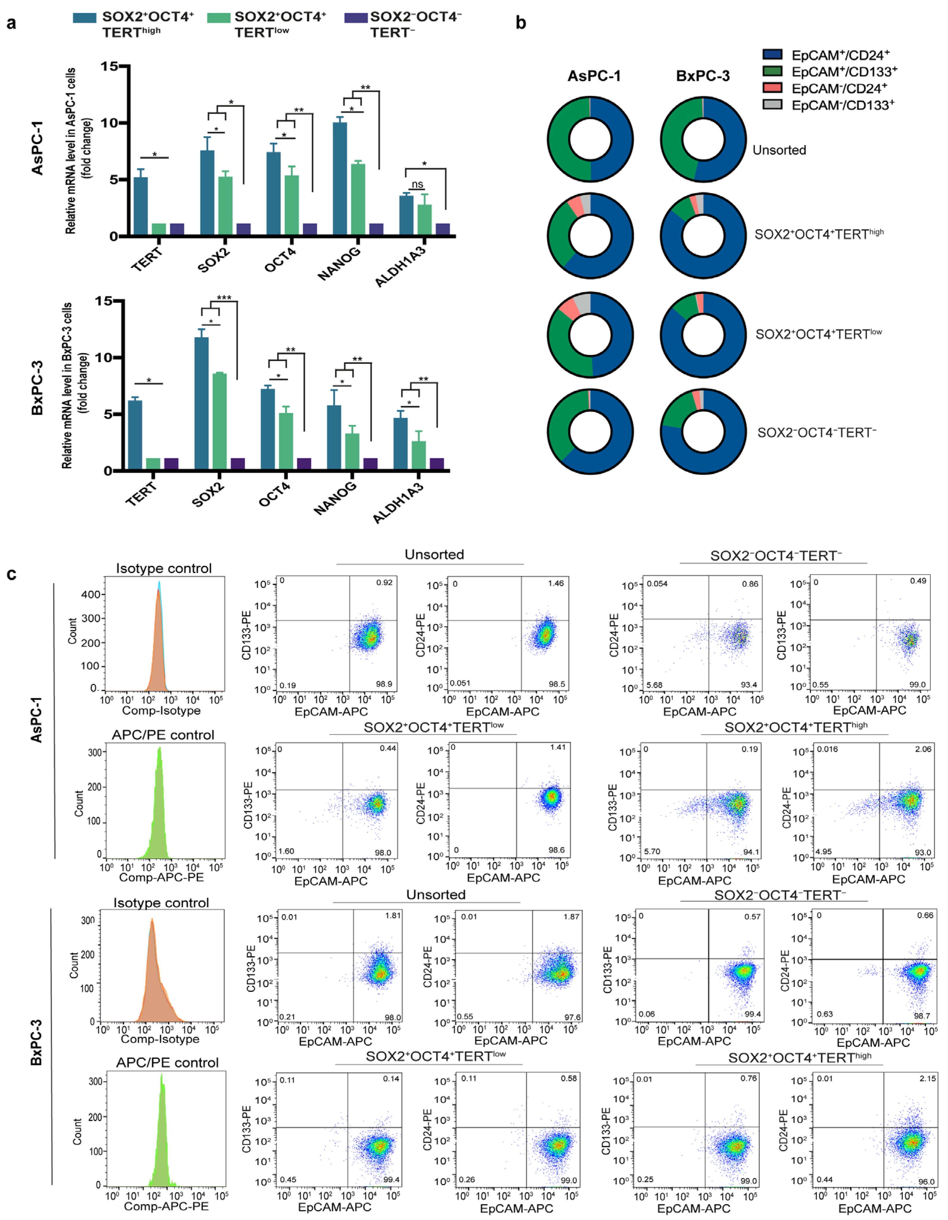 3.2. Identification of a Minority Population SOX2+OCT4+TERThigh of Pancreatic Tumor Cell Population