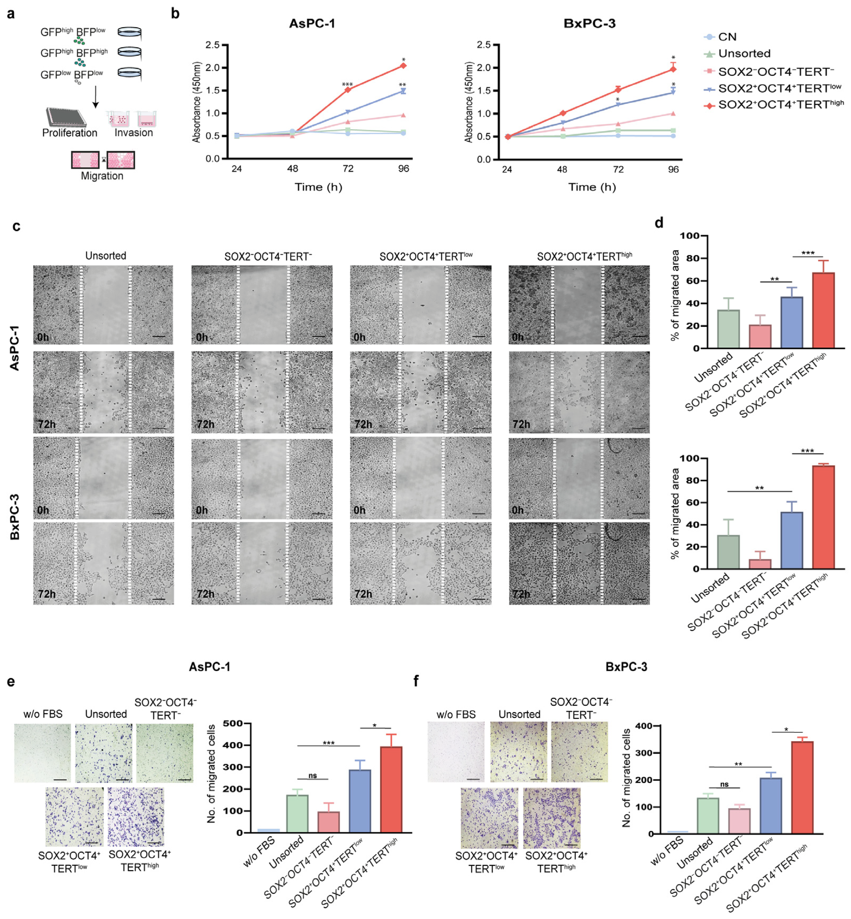 3.4. The Subpopulation SOX2+OCT4+TERThigh Exhibits Elevated Proliferative, Migratory and Invasive Capacities