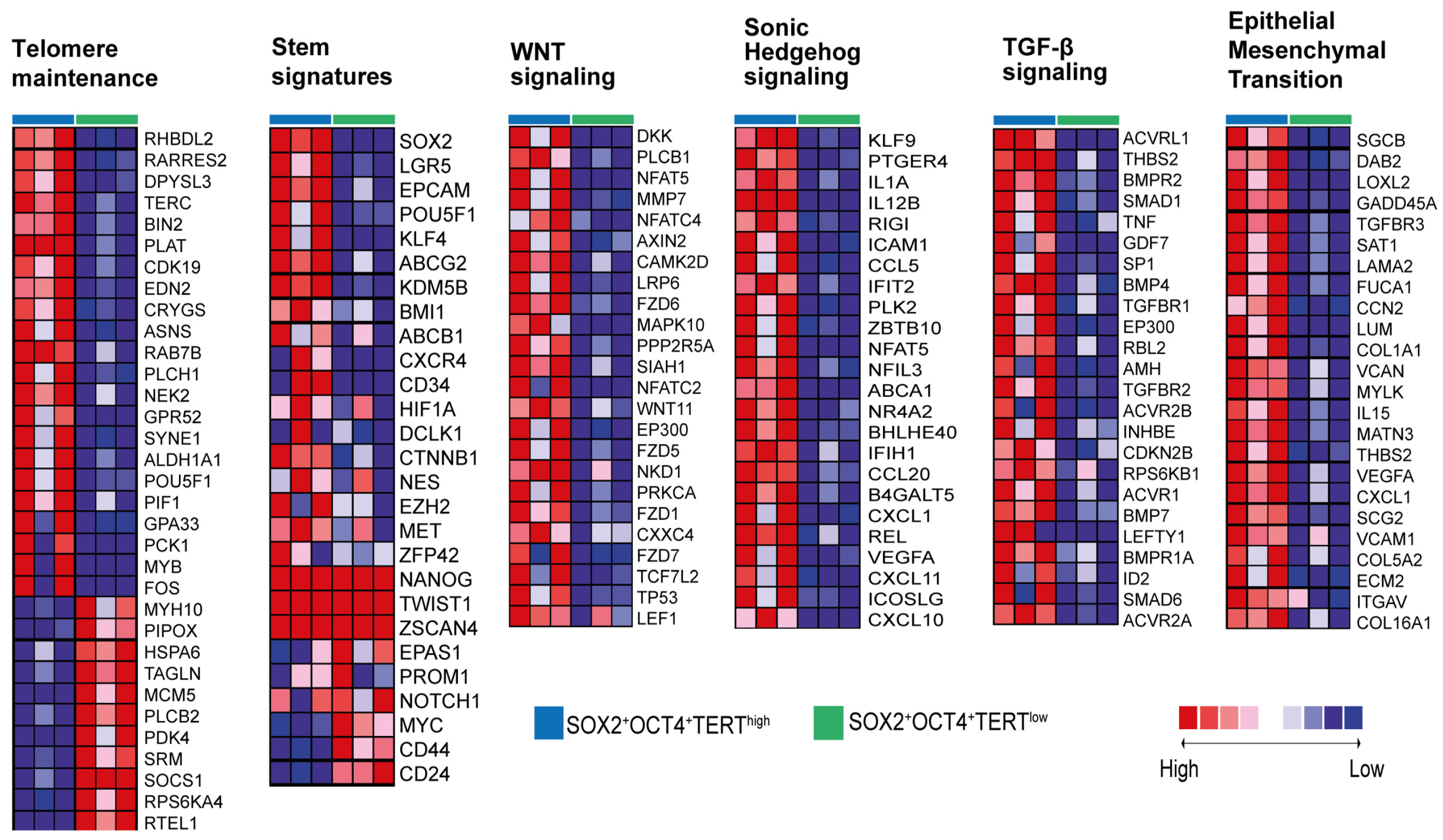 3.3. The Subpopulation SOX2+OCT4+TERThigh Is Enriched for Stem Cell Transcription Factors