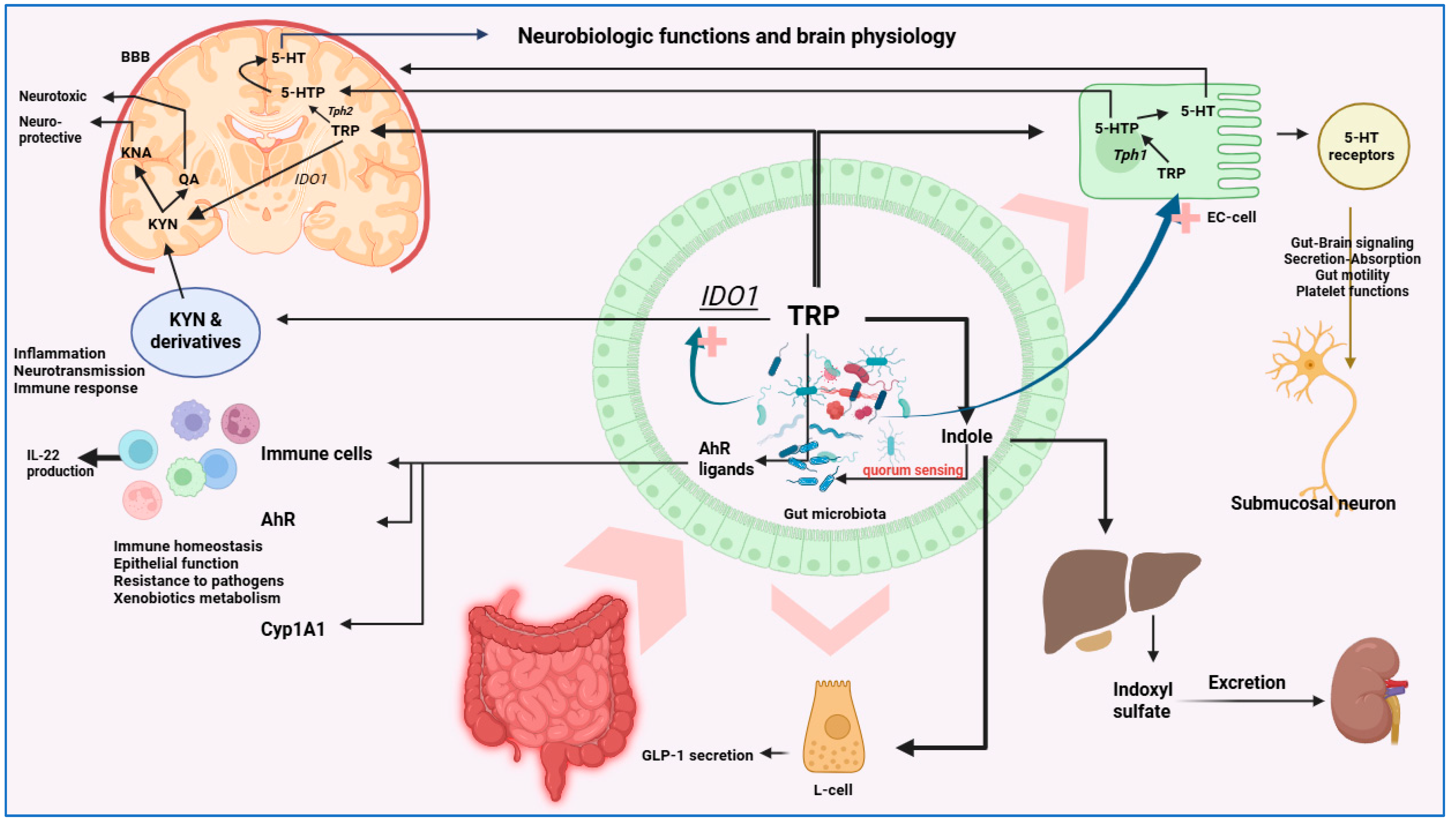 | Enterococcus faecalis, Streptococcus thermophilus | Serotonin (5-HT) | Promote tryptophan hydroxylase 1 (TPH1) in enterochromaffin cells → increased gut 5-HT | Animal & in vitro [82,83,84] |