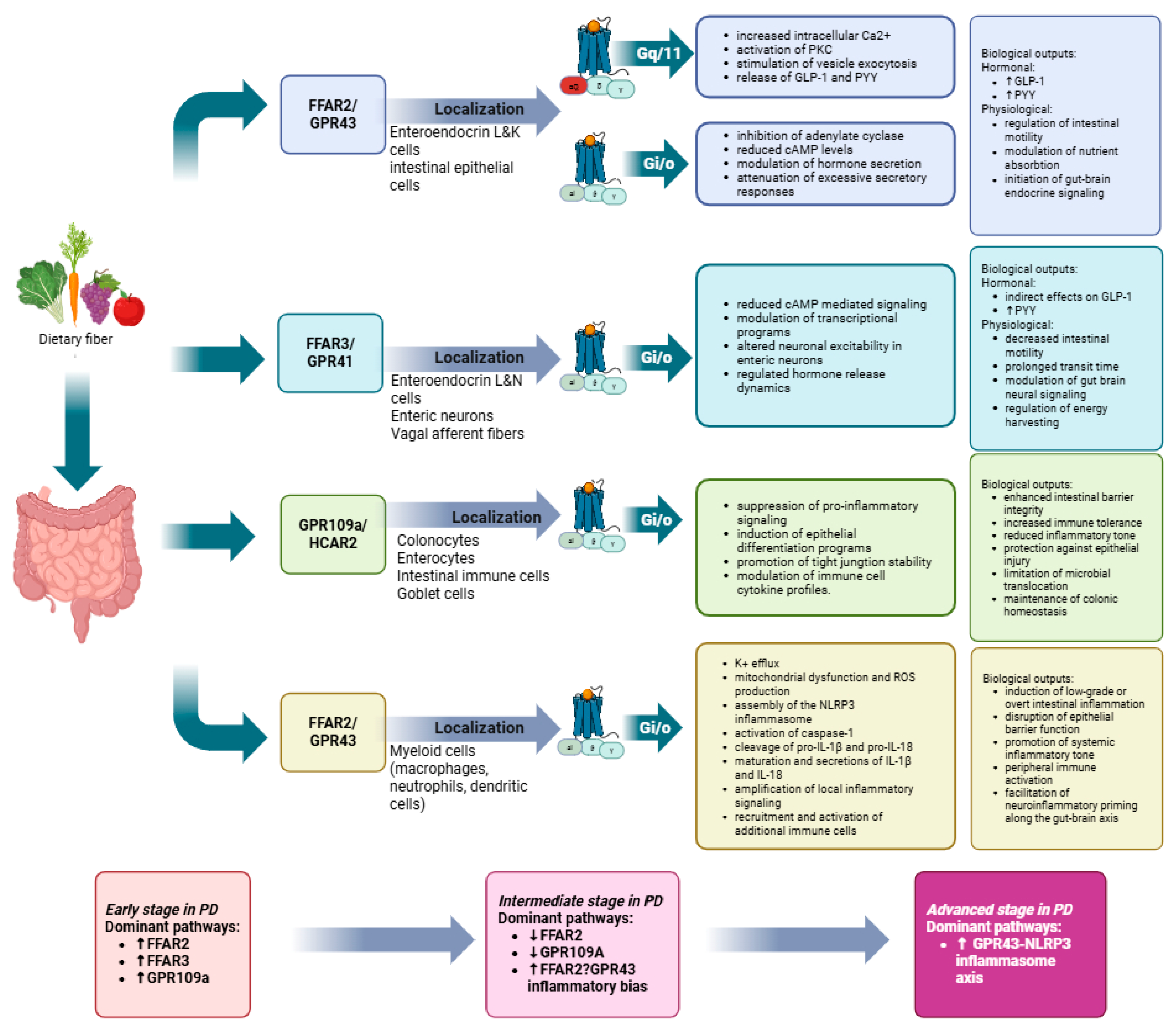 | Roseburia intestinalis | Butyrate, propionate | Modulates motility and ENS signaling via GPR41/43 | Human & animal [76] |