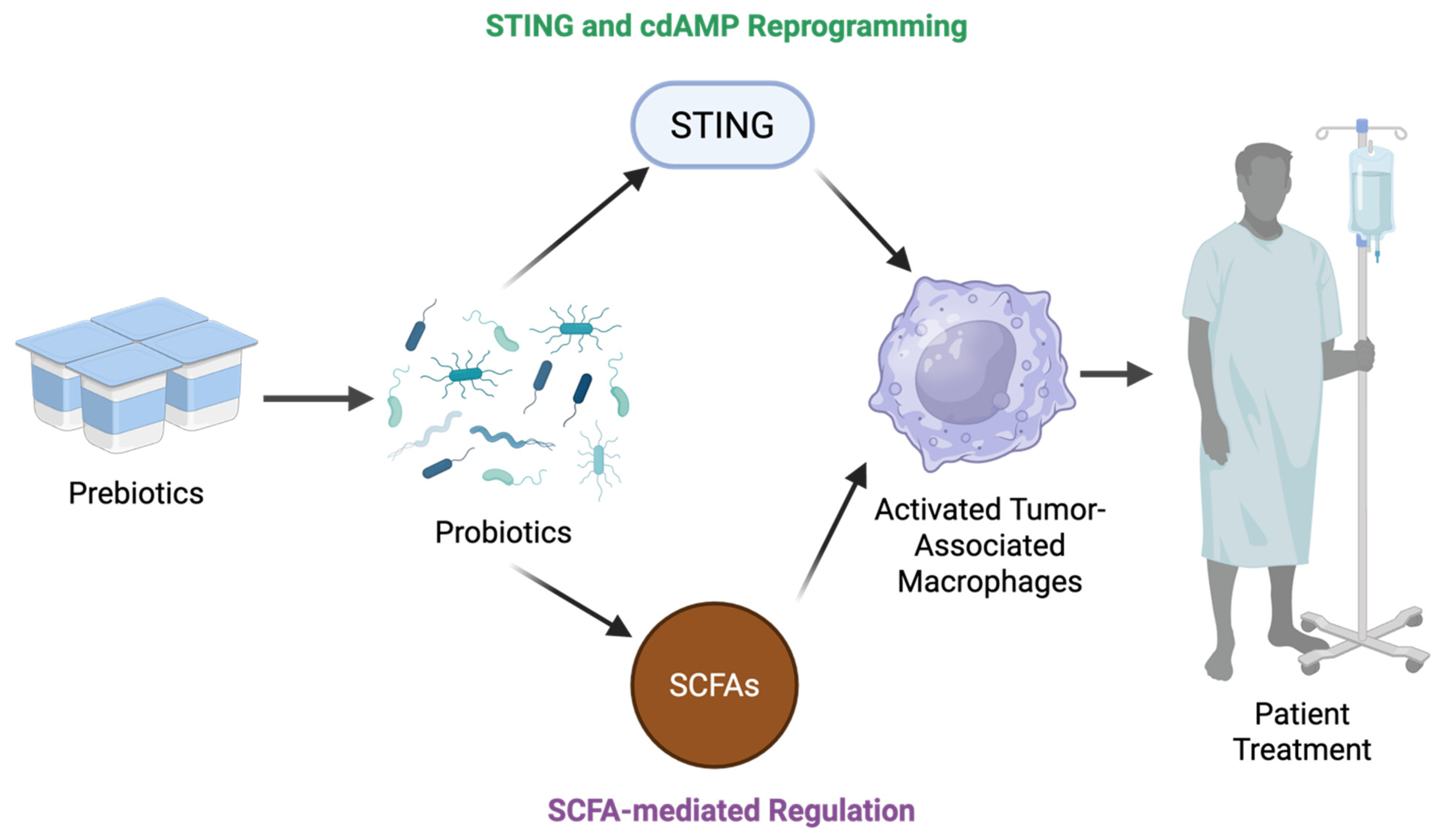 All of these factors position the microbiota as an active and dynamic regulator of macrophage phenotypes within the TME. Gaining an understanding of how microbial signals play a key role in macrophage polarization could open up a promising frontier in immunotherapy, where targeted manipulation of the microbiome could aid in reprogramming macrophages towards antitumor functions, thereby strengthening therapy efficacy and improving clinical outcomes.