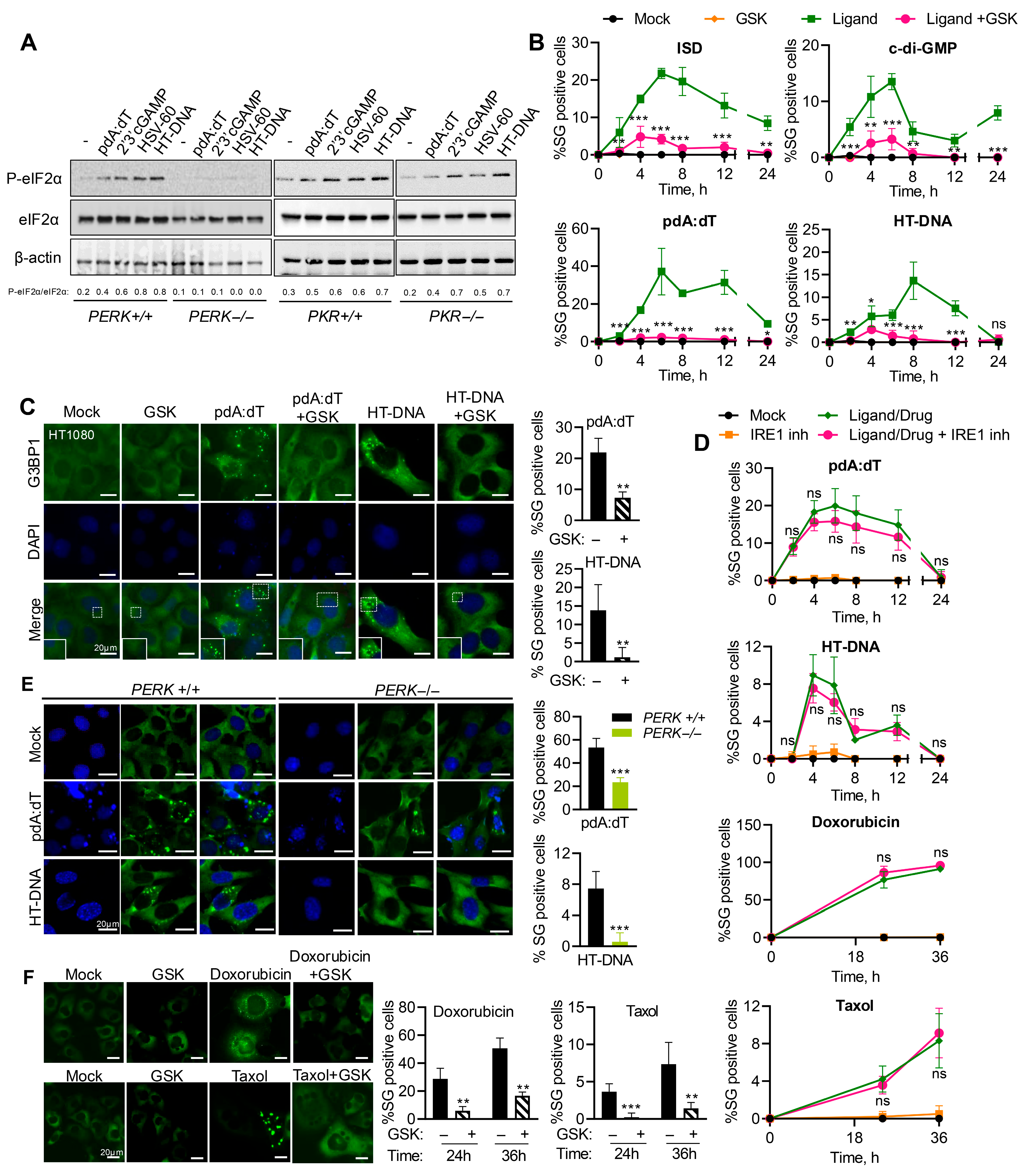 3.2. PERK Is Activated by Cytosolic dsDNA to Promote SG Formation