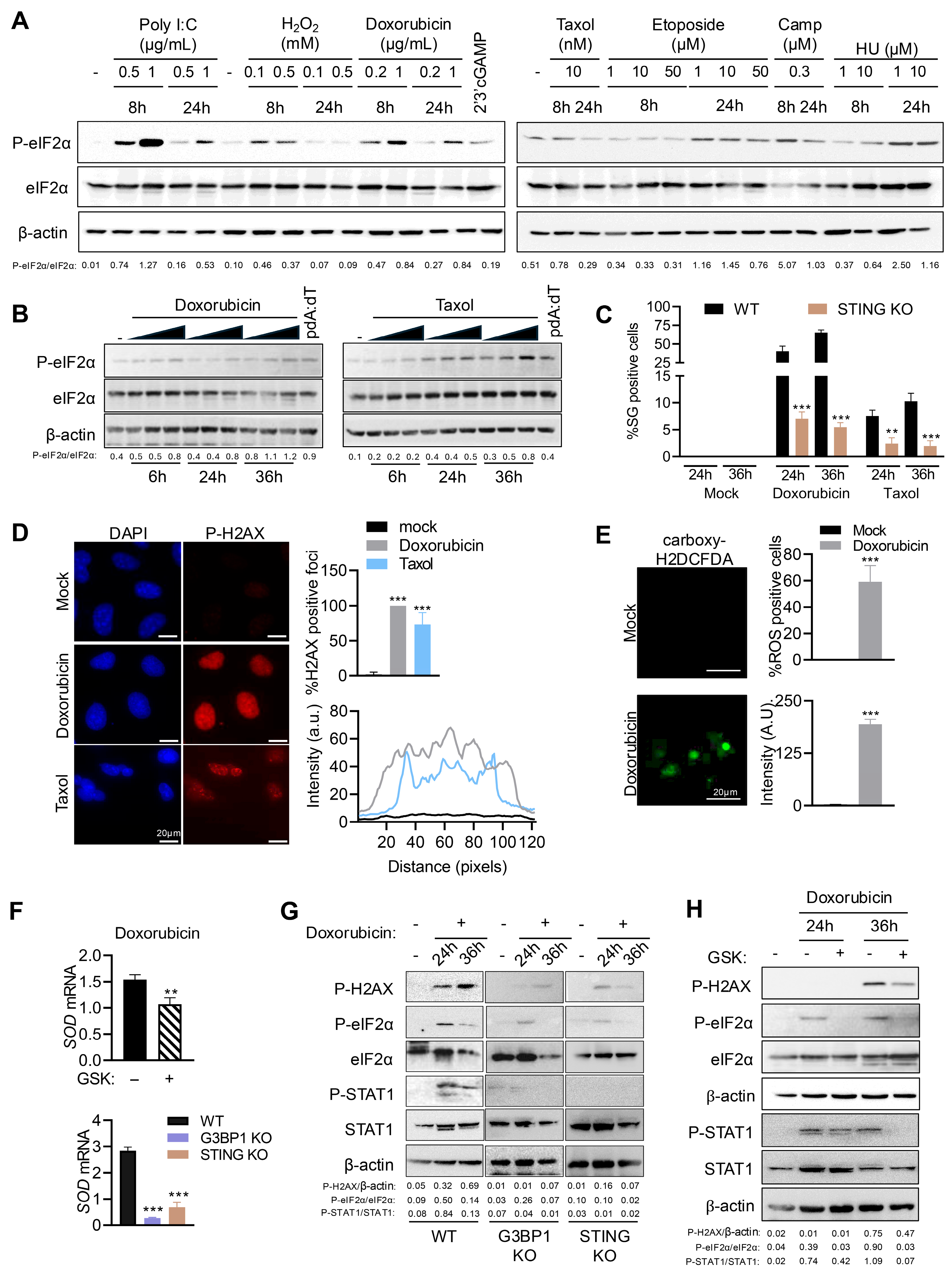 3.6. Activation of PERK and Stress Granules Is Required for Cytokine Induction by DNA Ligands and Doxorubicin