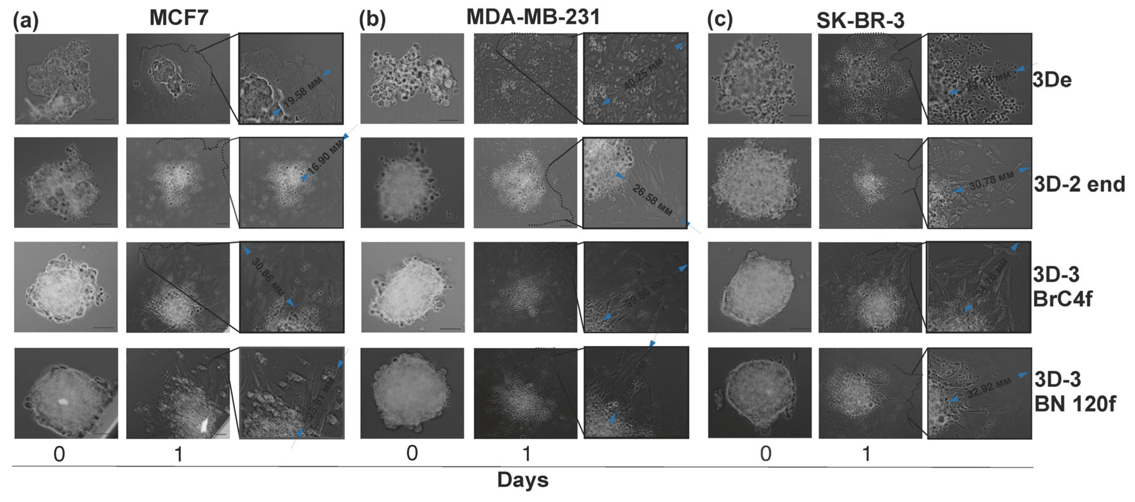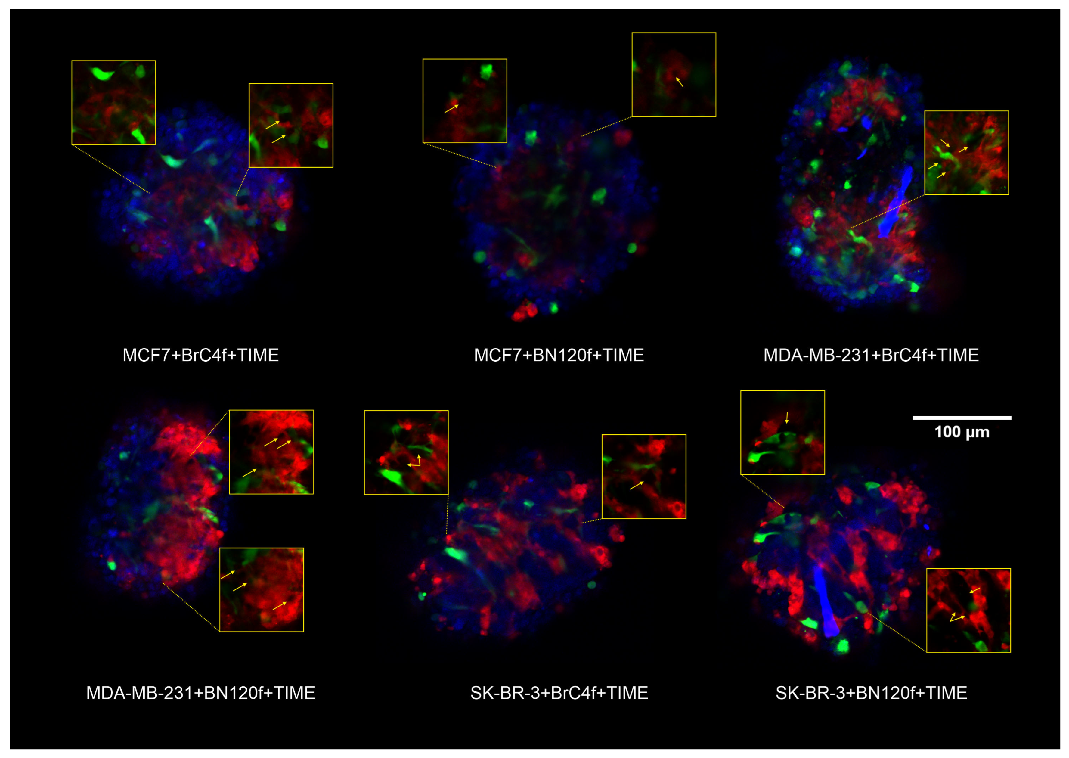 3.1. The Formation of a Heterotypic 3D Cell Model of Breast Cancer