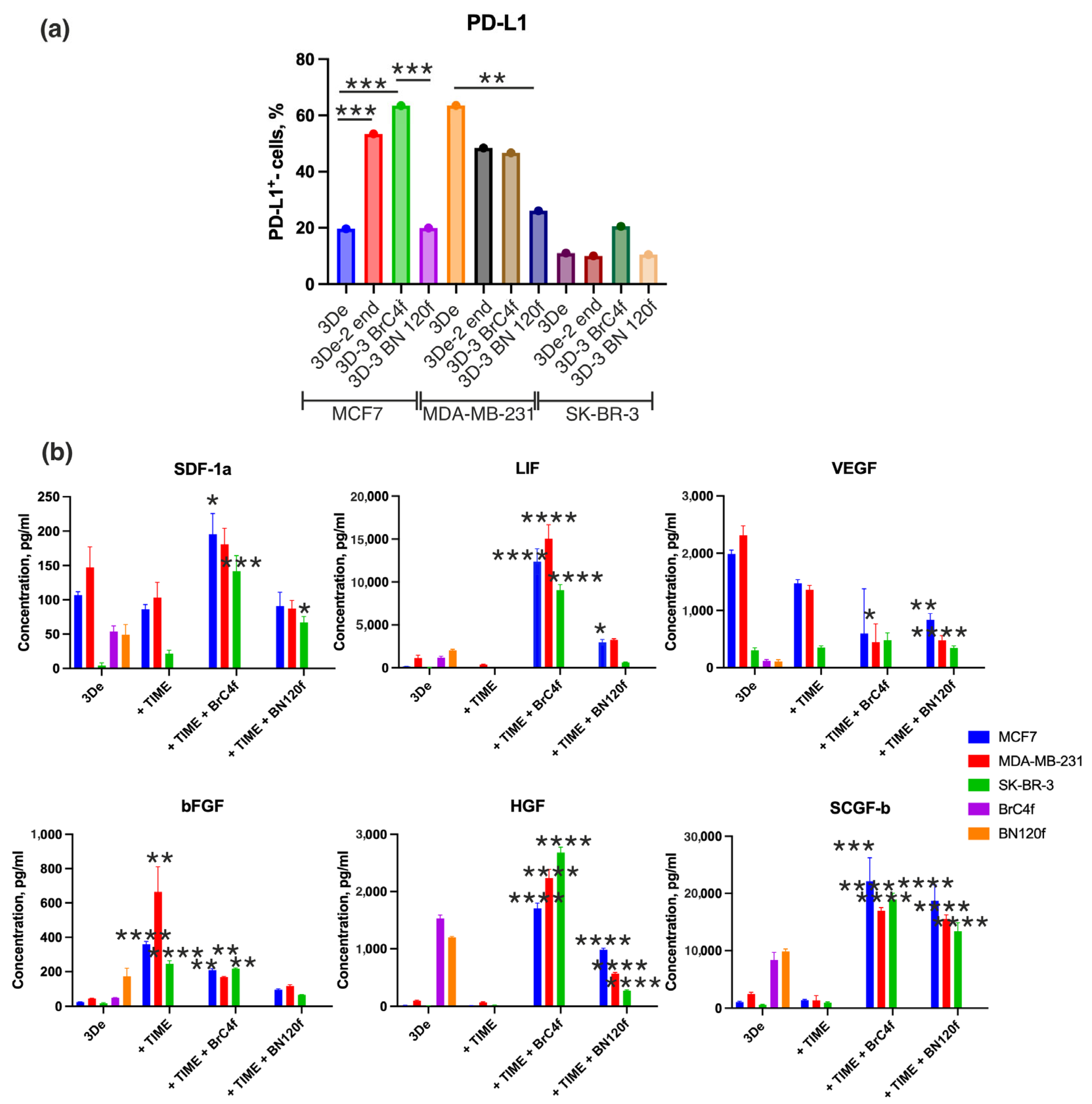APA StyleLeonteva, A., Kazakova, A., Berezutskaya, E., Ilyina, A., Sergeevichev, D., Vladimirov, S., Bogachek, M., Vakhrushev, I., Makarevich, P., Richter, V., & Nushtaeva, A. (2026). Heterotypic 3D Model of Breast Cancer Based on Tumor, Stromal and Endothelial Cells: Cytokines Interaction in the Tumor Microenvironment. Cells, 15(2), 145. https://doi.org/10.3390/cells15020145