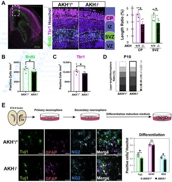 − mice, particularly the elevation of IL-1α, is consistent with previous reports showing that pro-inflammatory cytokines suppress NSCs proliferation and disrupt the balance between neuronal and glial differentiation. We demonstrate that AKH deficiency during embryonic development disrupts cortical layer formation and result in anxiety-like behavior in adulthood. These findings align with the DOHaD framework, which posits that molecular and environmental perturbations during critical developmental windows can program long-term brain function and behavioral outcomes [