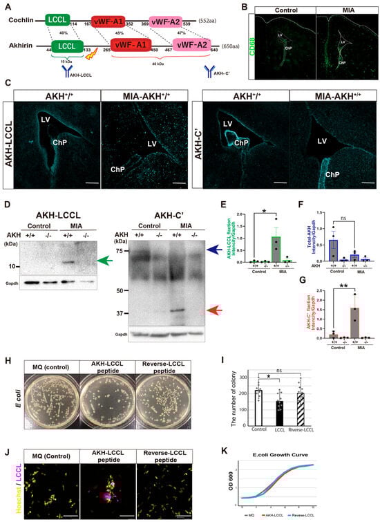 Figure 6A). Immunostaining revealed that LCCL immunoreactivity became more diffuse throughout the ventricular region in MIA embryos, whereas the C-terminal AKH signal was markedly reduced at the ventricular surface and largely confined to the ChP epithelium (