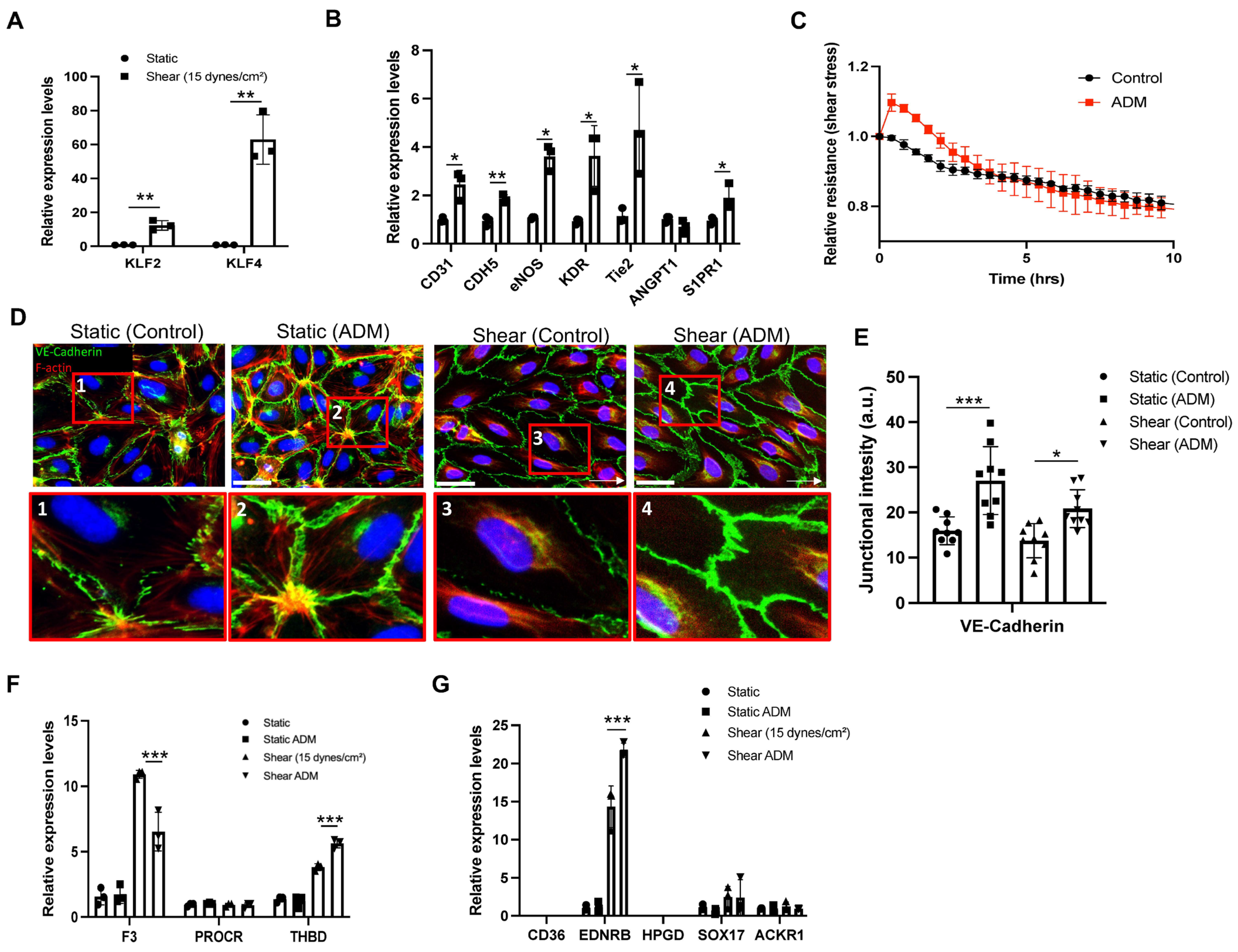 3.3. ADM Improves Endothelial Homeostatic Markers Under Shear Stress