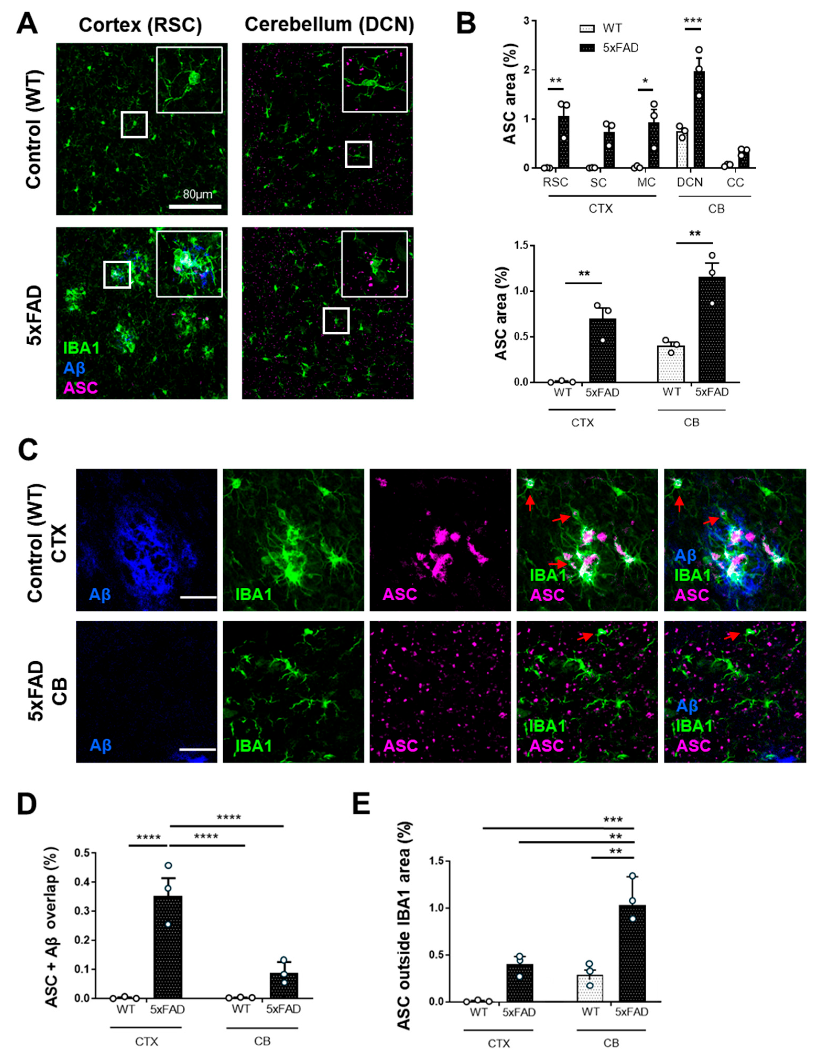 - Venegas, C.; Kumar, S.; Franklin, B.S.; Dierkes, T.; Brinkschulte, R.; Tejera, D.; Vieira- Saecker, A.; Schwartz, S.; Santarelli, F.; Kummer, M.P.; et al. Microglia-derived ASC specks cross-seed amyloid-β in Alzheimer’s disease. Nature 2017, 552, 355–361. [Google Scholar] [CrossRef]