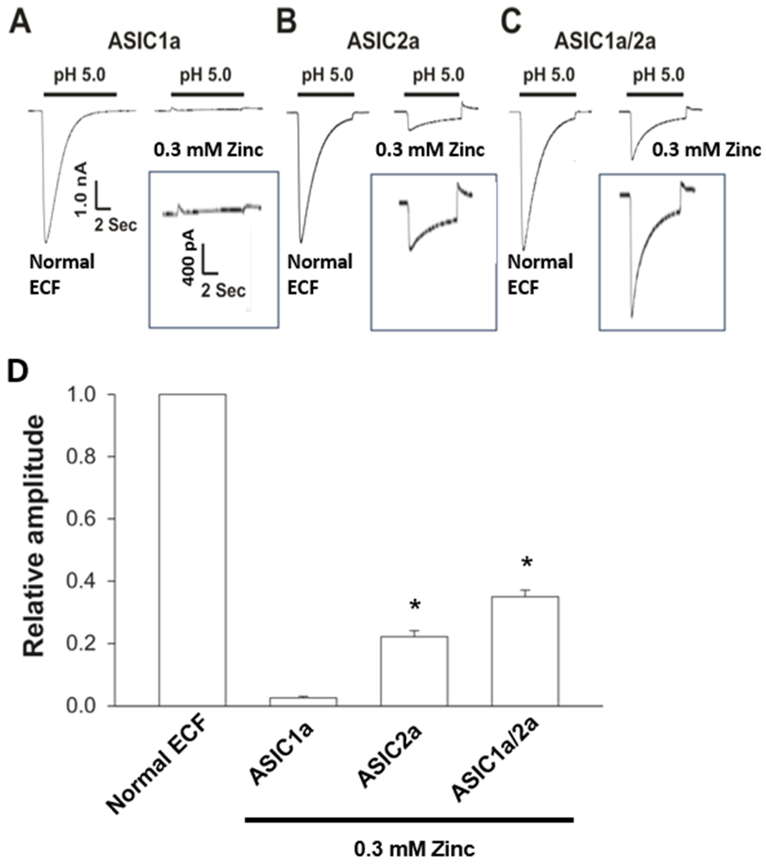- Acid-sensing ion channel 2a (ASIC2a)-containing channels are permeable to zinc.