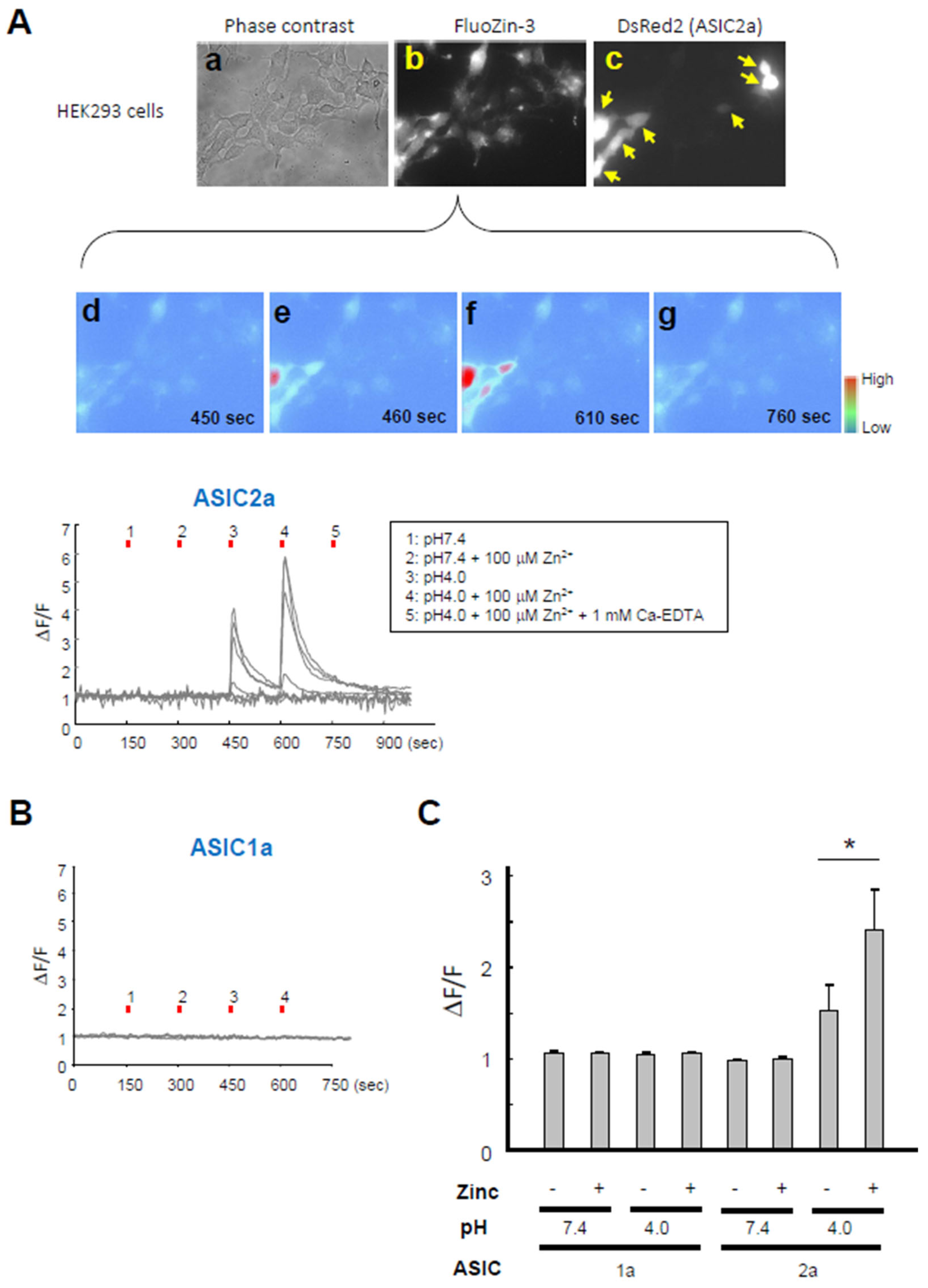 - ASIC2a may play a role in zinc toxicity under low pH conditions such as in severe ischemia.
