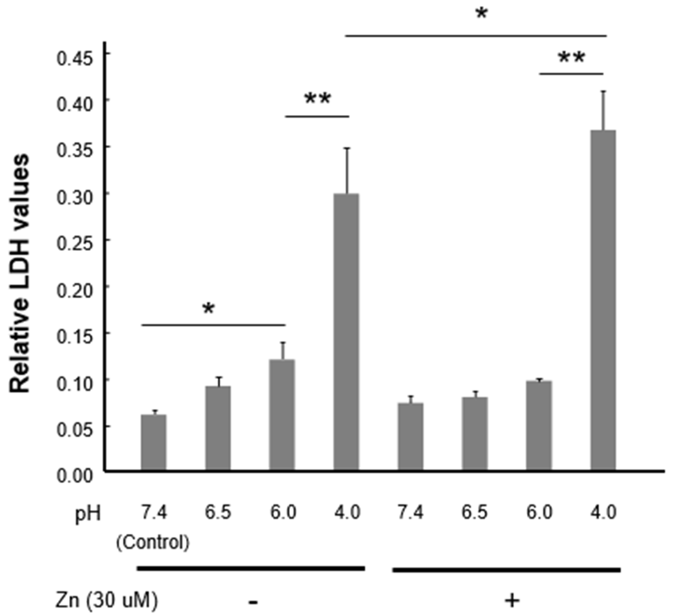 3.6. Zinc Facilitates Neuronal Injury Under Severe Acidic Condition