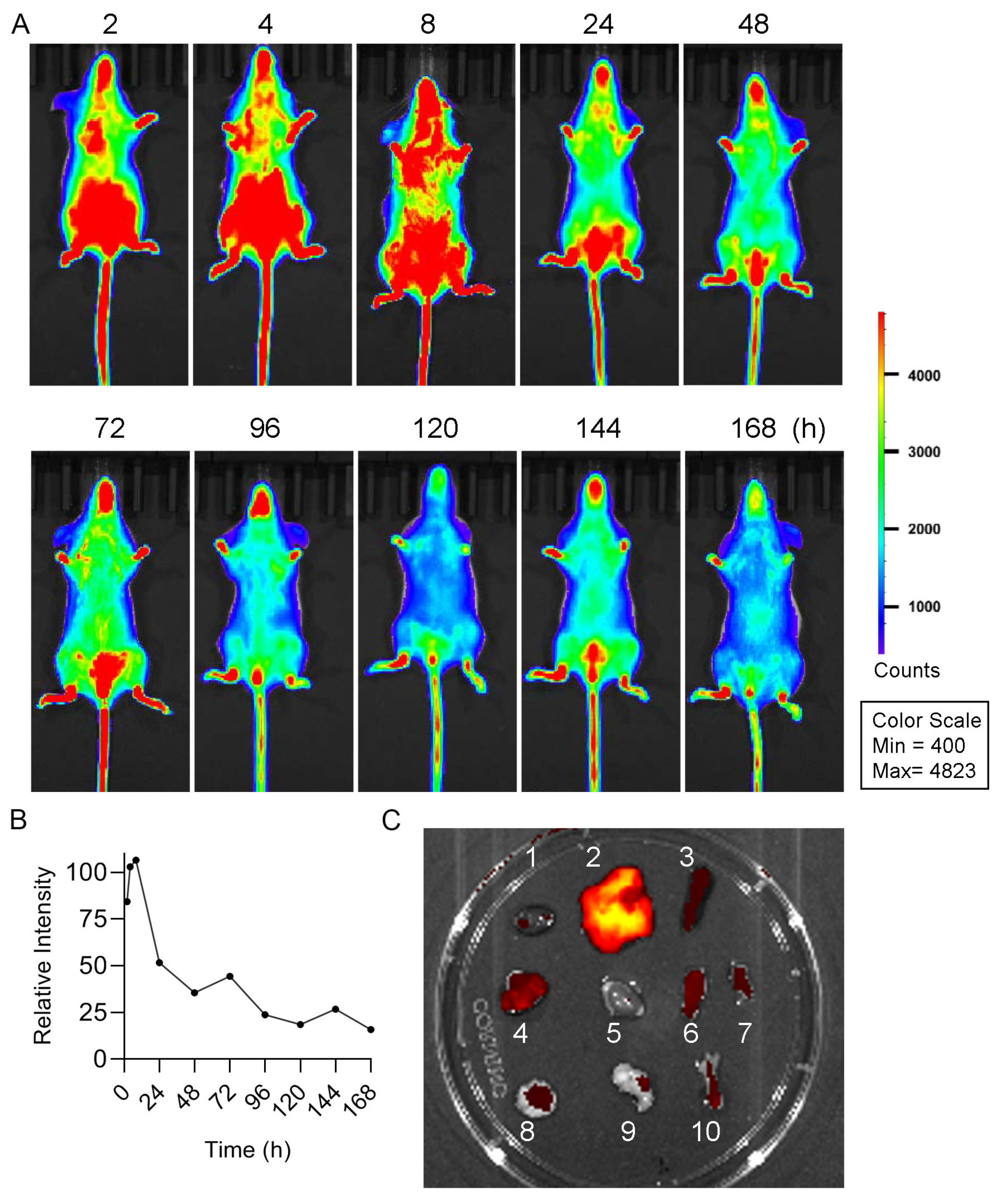 2.2. Evaluation of Biodistribution with in Vivo Imaging