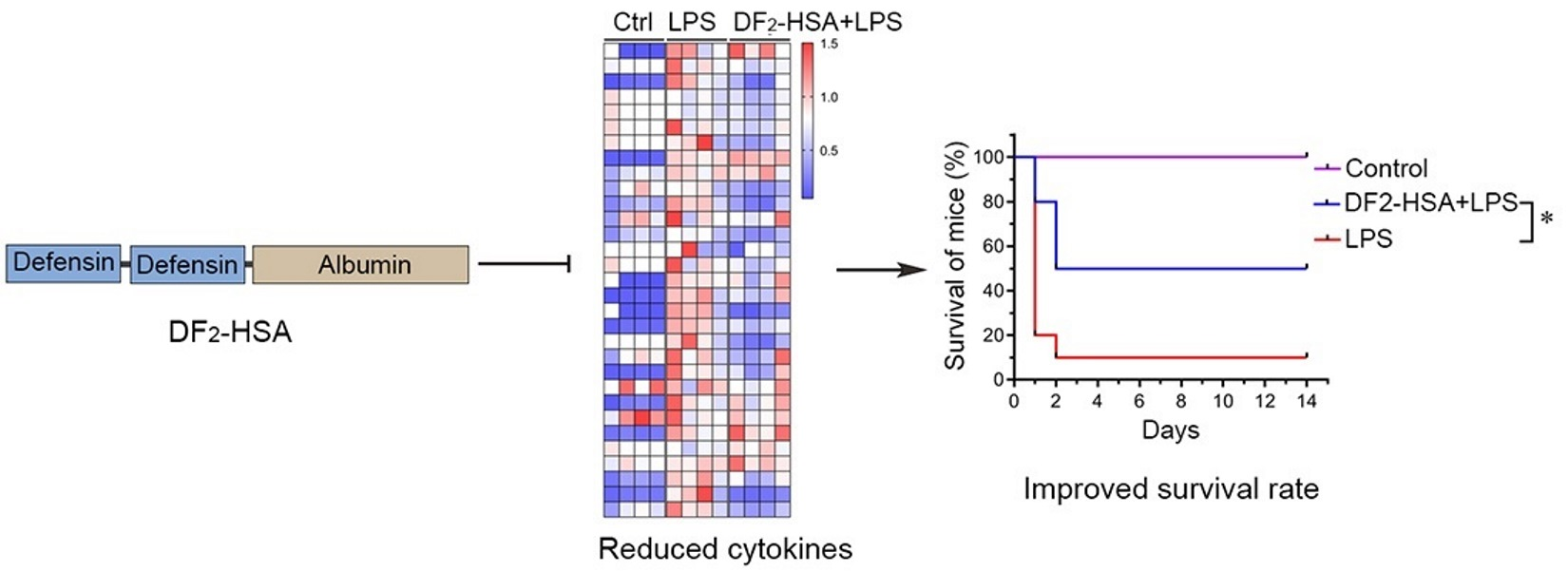 A Human β-Defensin-Based Recombinant Protein DF2-HSA Ameliorates Cytokine Storm