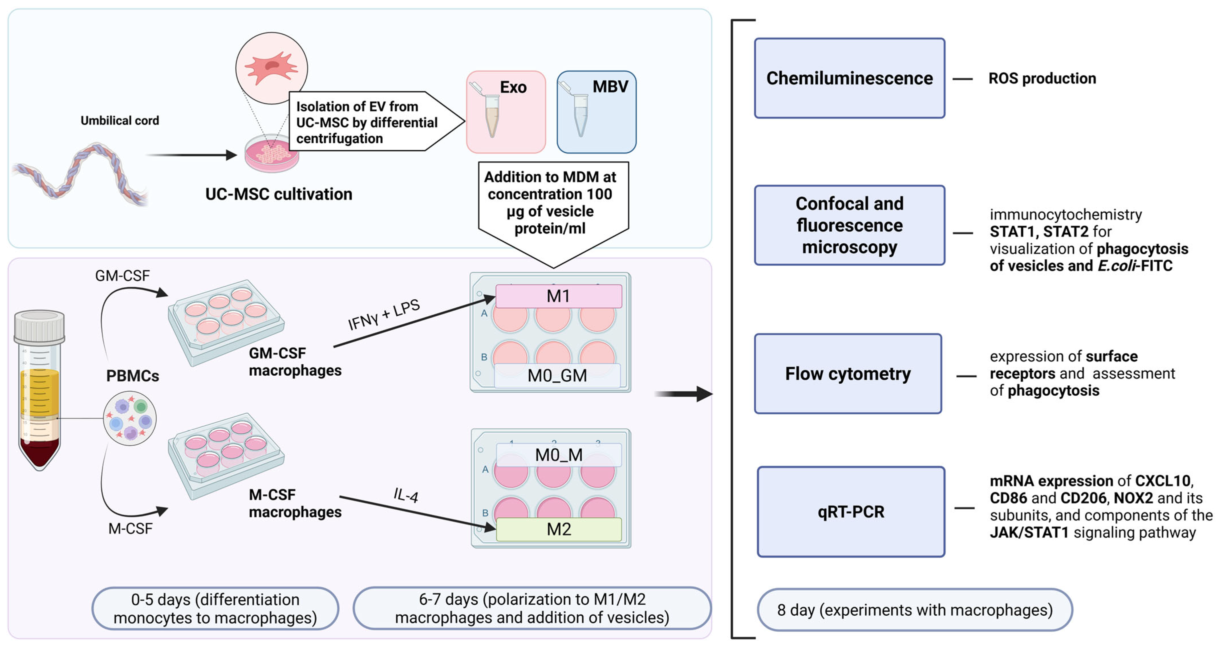 Klyucherev TO, Yurkanova MD, Revokatova DP, Chevalier DA, Shishkov VV, Vlasova II, Kosheleva NV, Timashev PS. Mesenchymal Stem Cell-Derived Extracellular Vesicles Attenuate Pro-Inflammatory Macrophage Polarization: Comparison of Matrix-Bound and Small Extracellular Vesicles. Cells. 2026; 15(2):93. https://doi.org/10.3390/cells15020093
