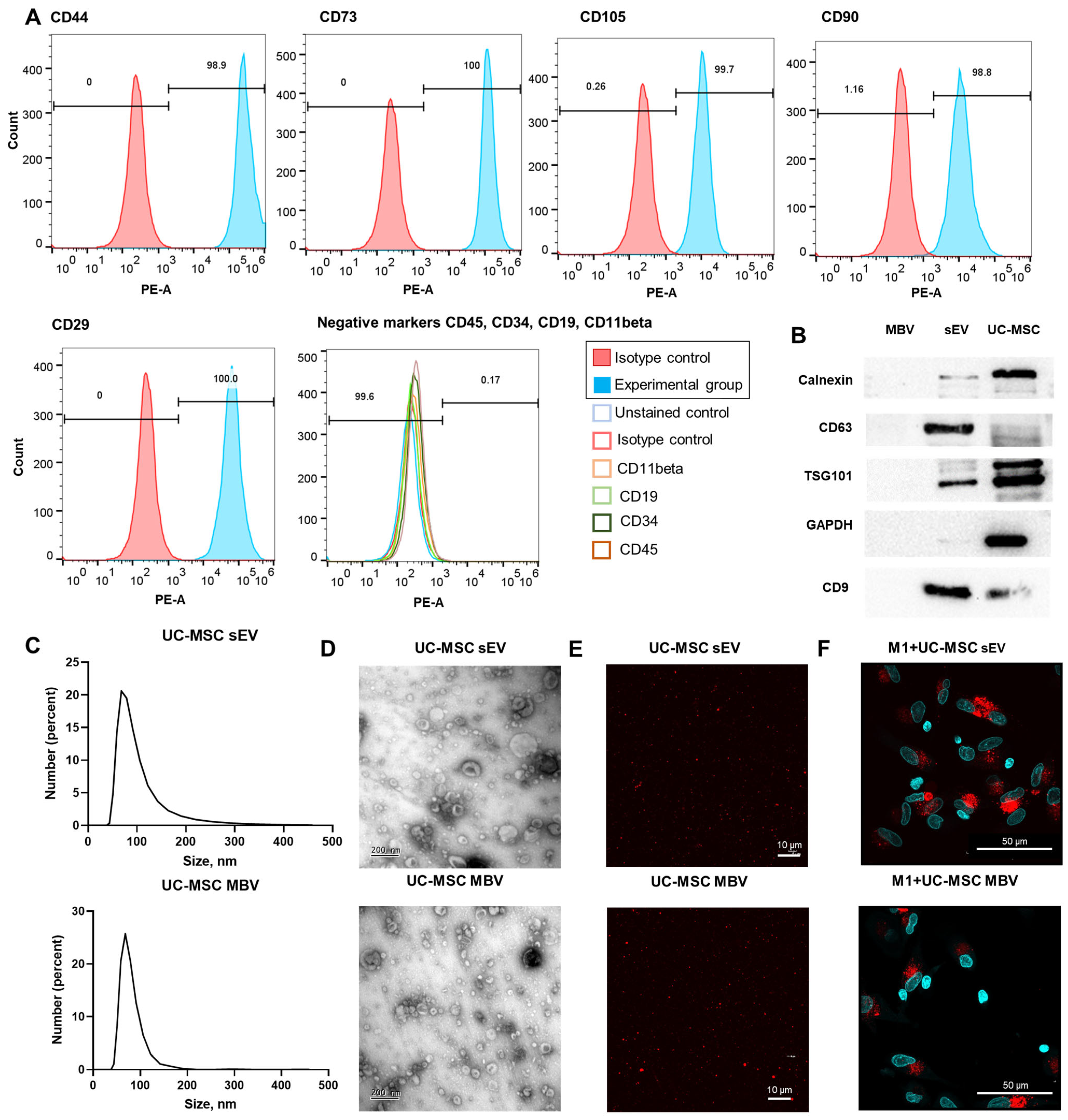 2.8. Phagocytosis of PKH26-Labeled MBV and sEV UC-MSCs by Macrophages