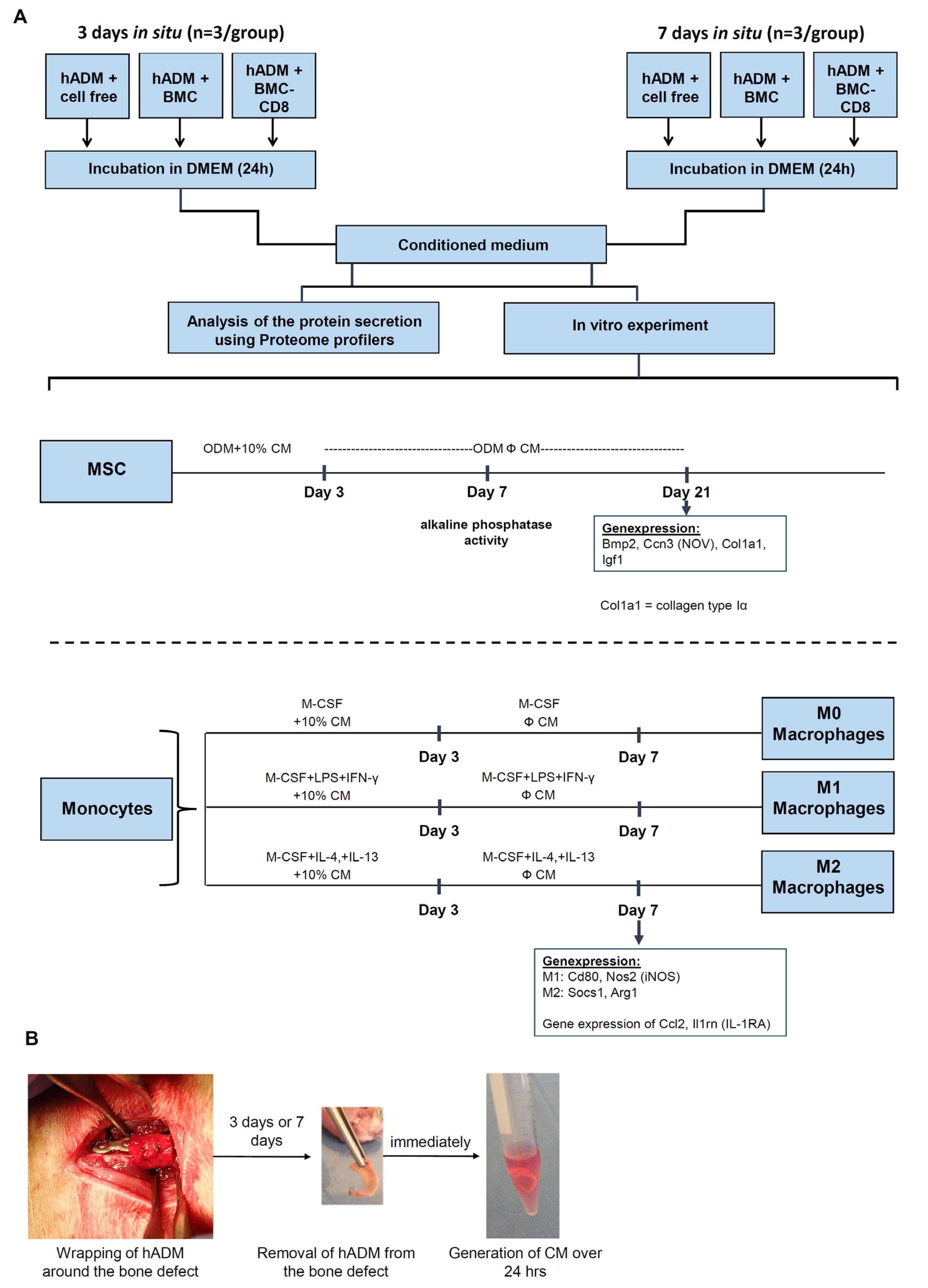 - Penna-Martinez, M.; Kammerer, A.; Stützle, P.; Fees, S.; Behr, S.; Schaible, I.; Schröder, K.; Verboket, R.D.; Neijhoft, J.; Marzi, I.; et al. Enhancement of a one-step membrane technique for the treatment of large bone defects by pre-seeding the membrane with CD8 lymphocyte depleted bone marrow mononuclear cells in a rat femoral defect model. Front. Immunol. 2024, 15, 1488611. [Google Scholar] [CrossRef]