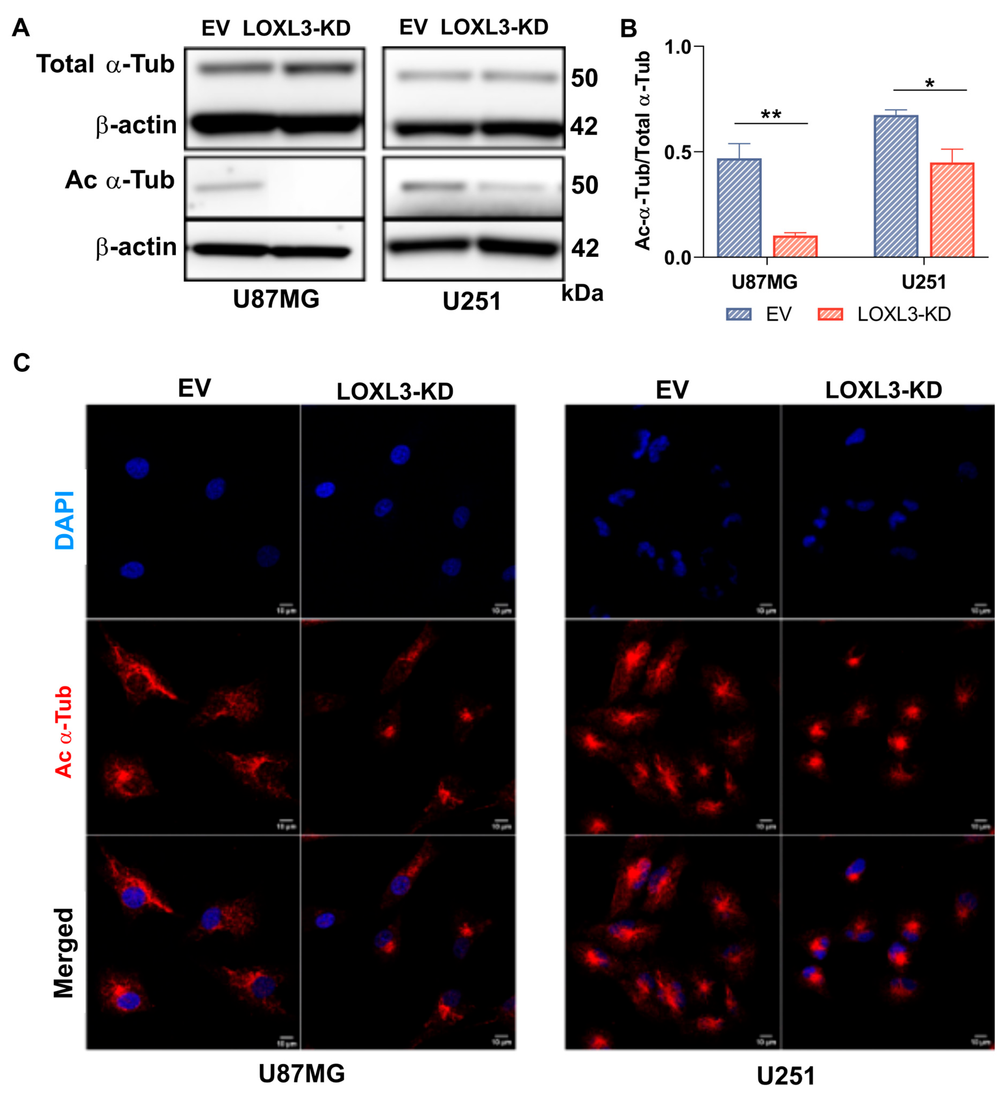 3.2. LOXL3 Partial Knockout Reduces α-Tubulin Acetylation