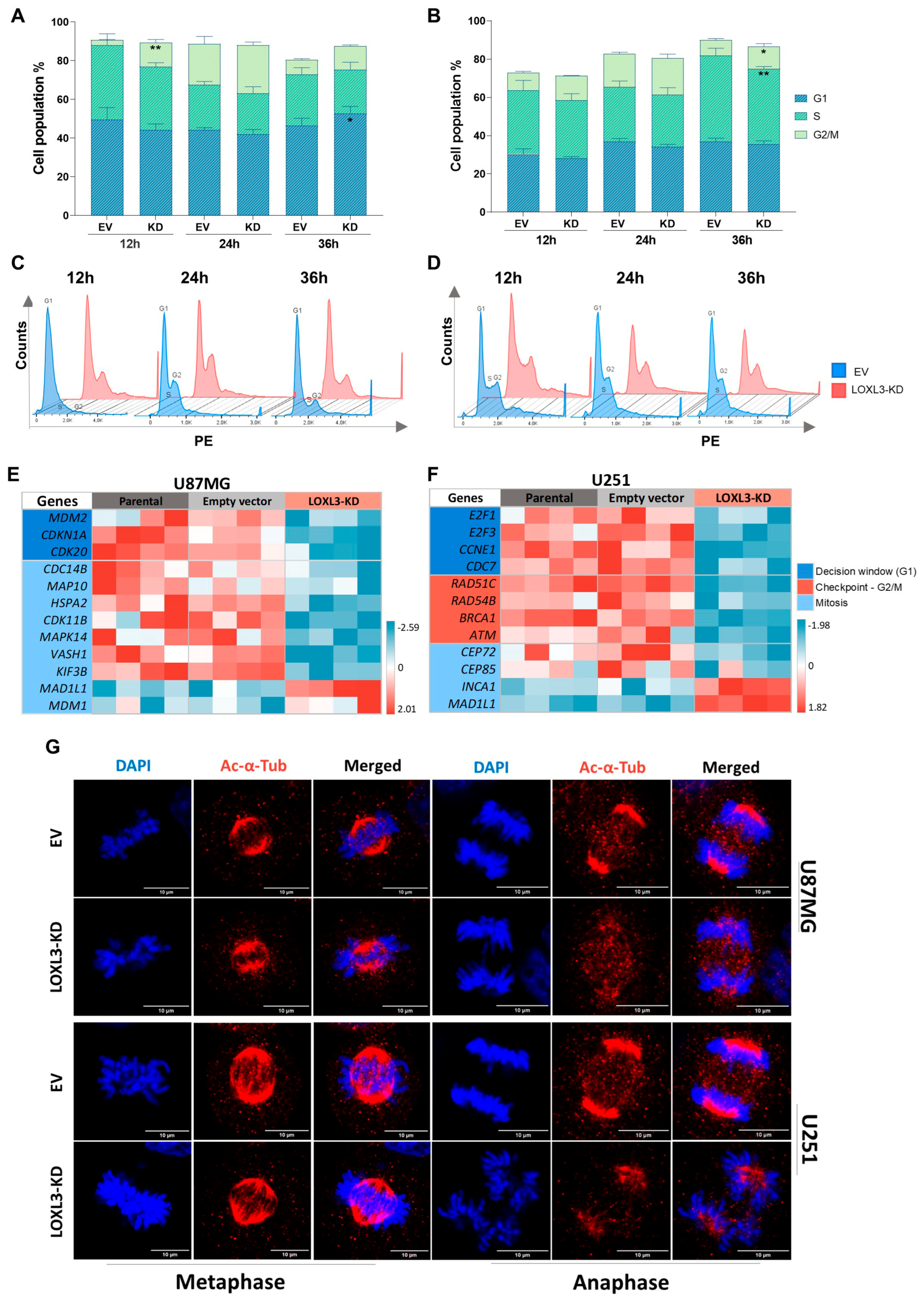 3.3. Reduced LOXL3 Expression Delays Cell Cycle Progression and Disrupts Mitosis