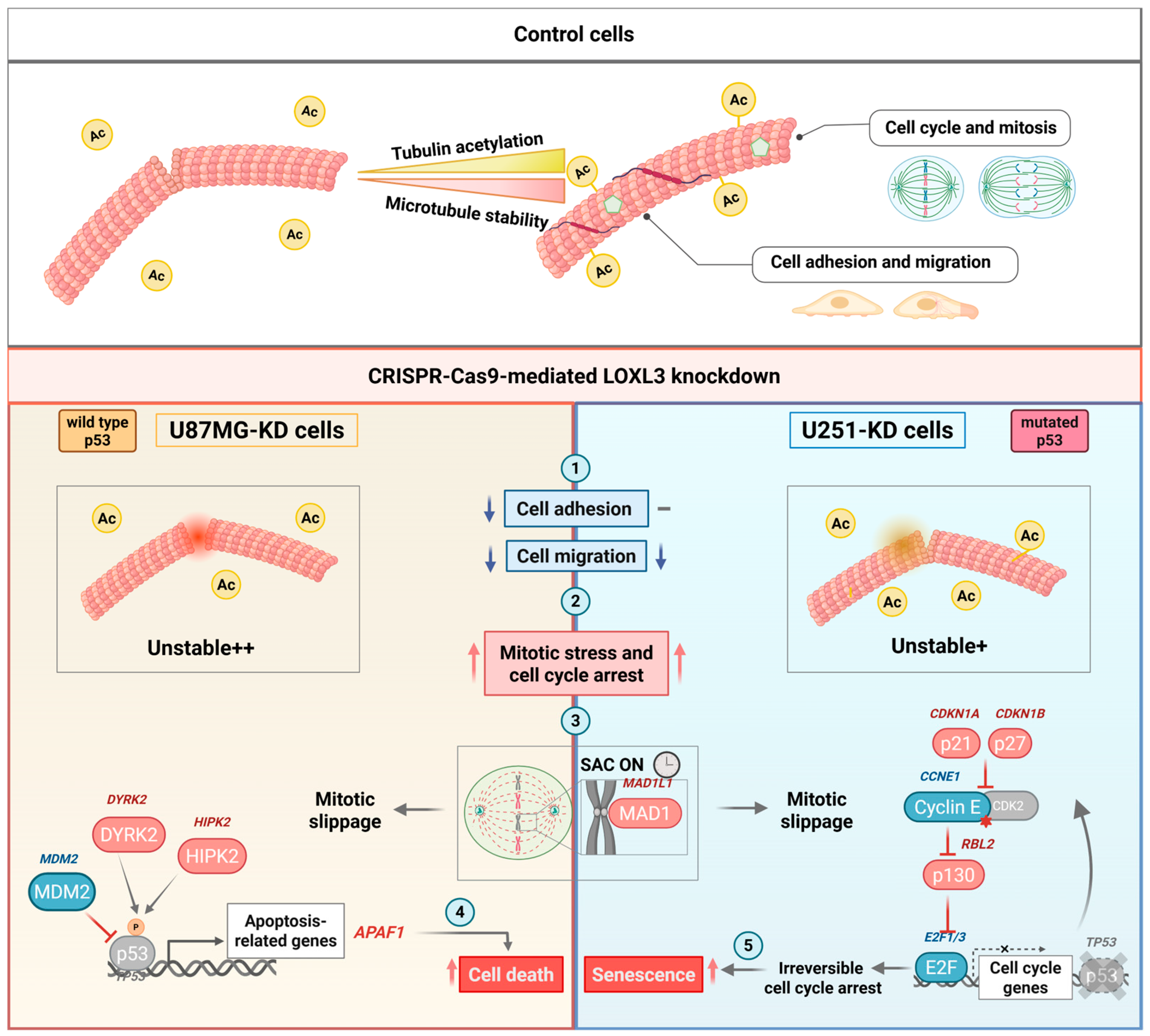 Reduced LOXL3 Expression Disrupts Microtubule Acetylation and Drives TP53-Dependent Cell Fate in Glioblastoma