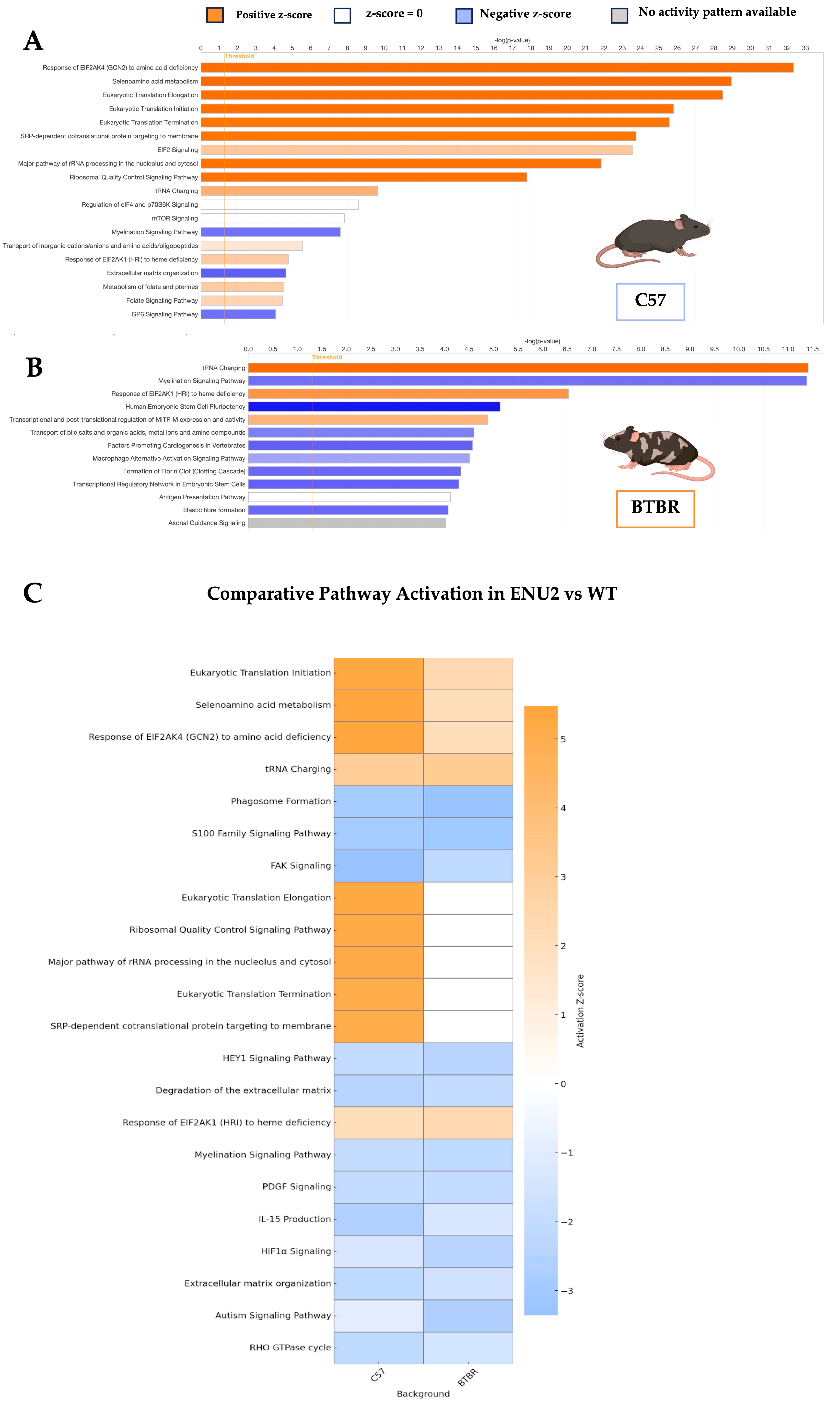 3.2. Activation of Translational and Metabolic Pathways in enu2 Mice Across Genetic Backgrounds