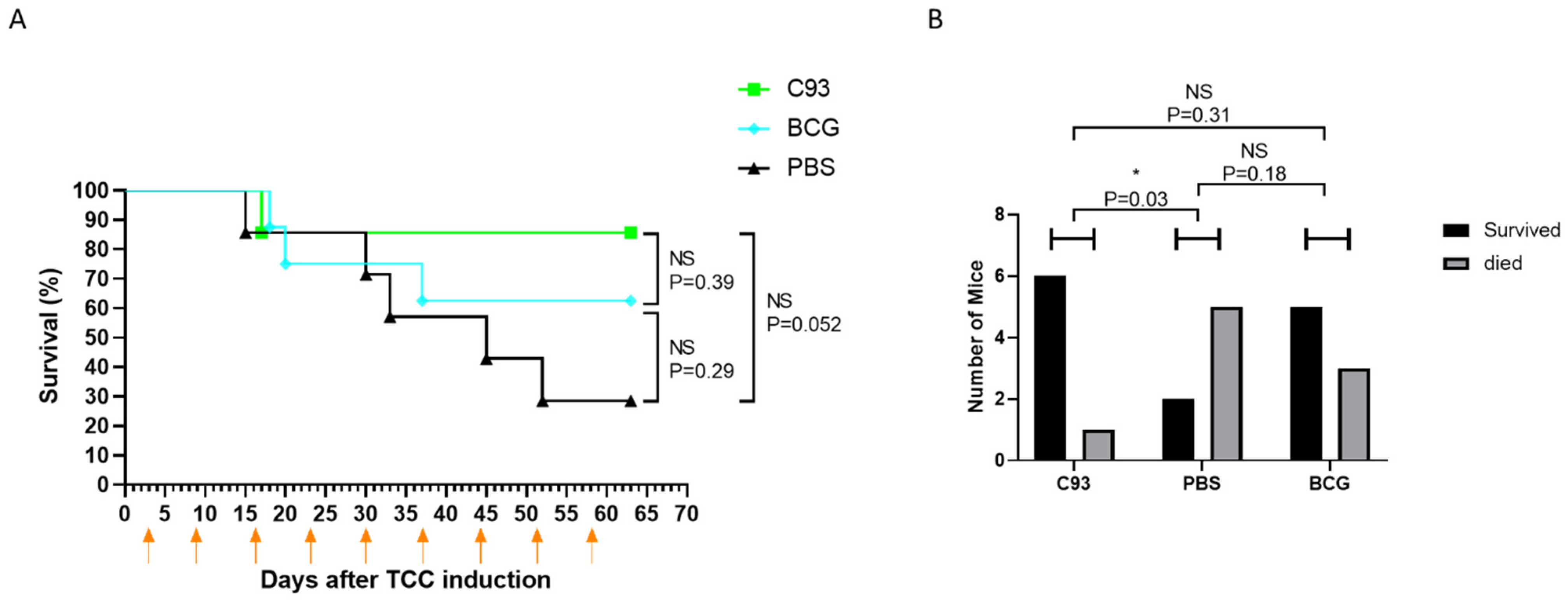 2.1. The Hemolysin-Deficient C93 Mutant Is More Efficient than BCG in Preventing TCC Development