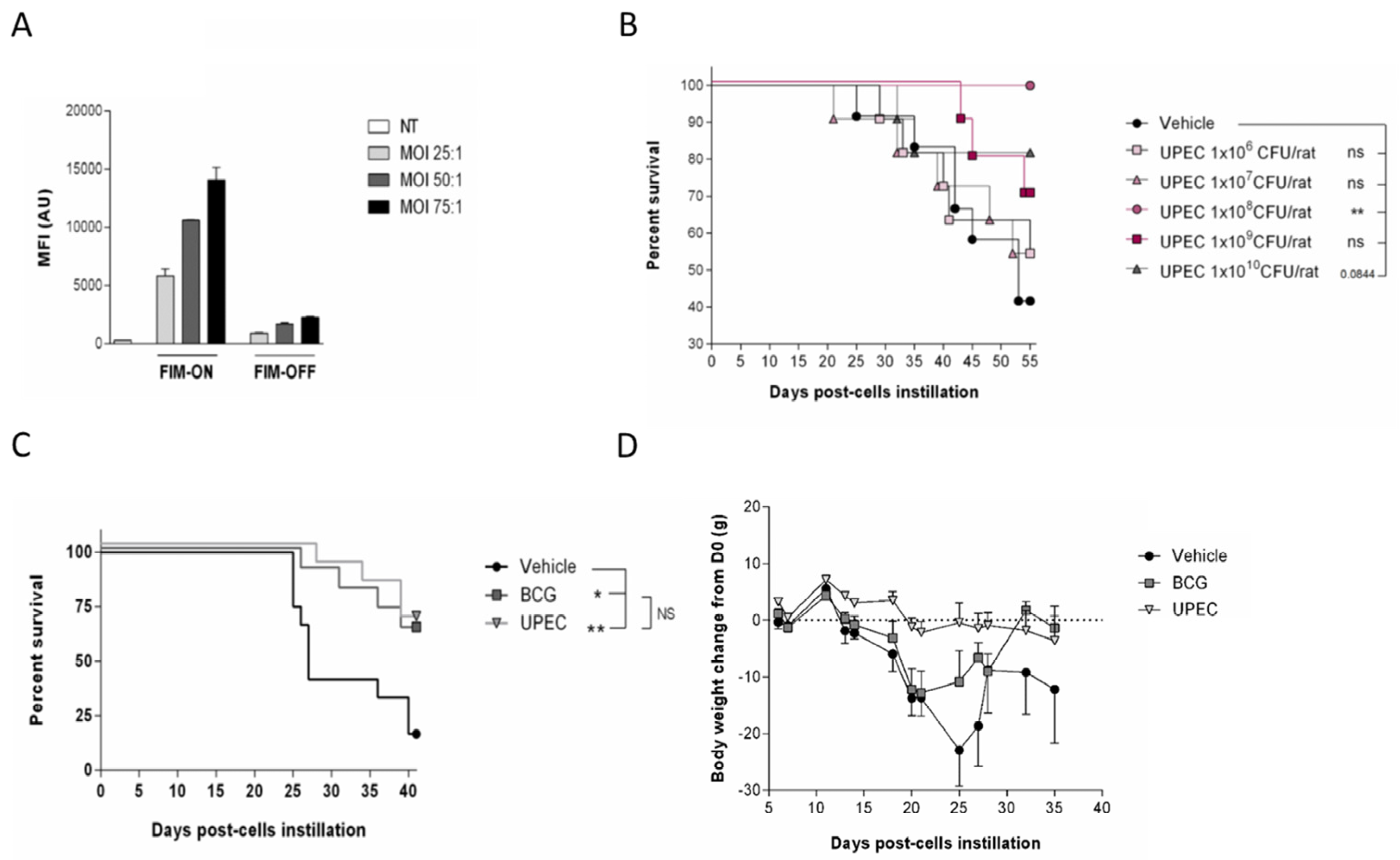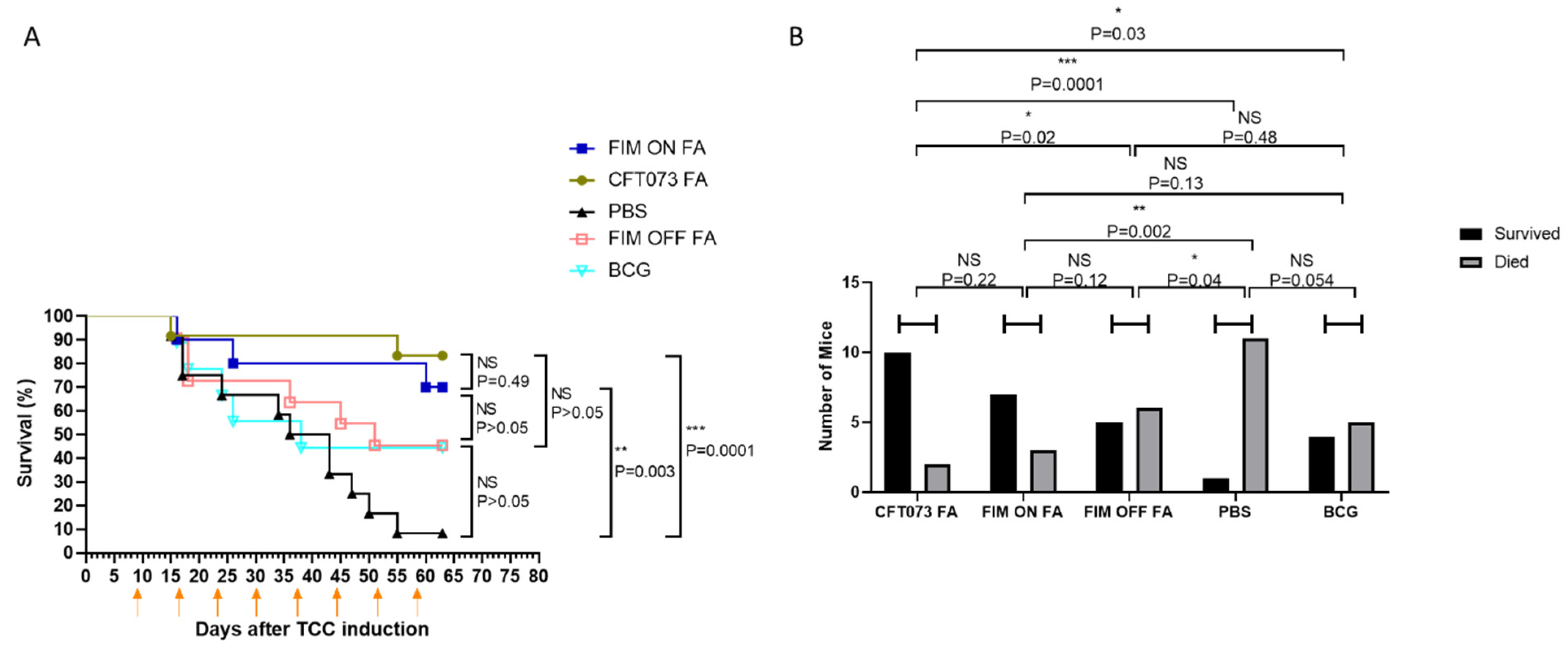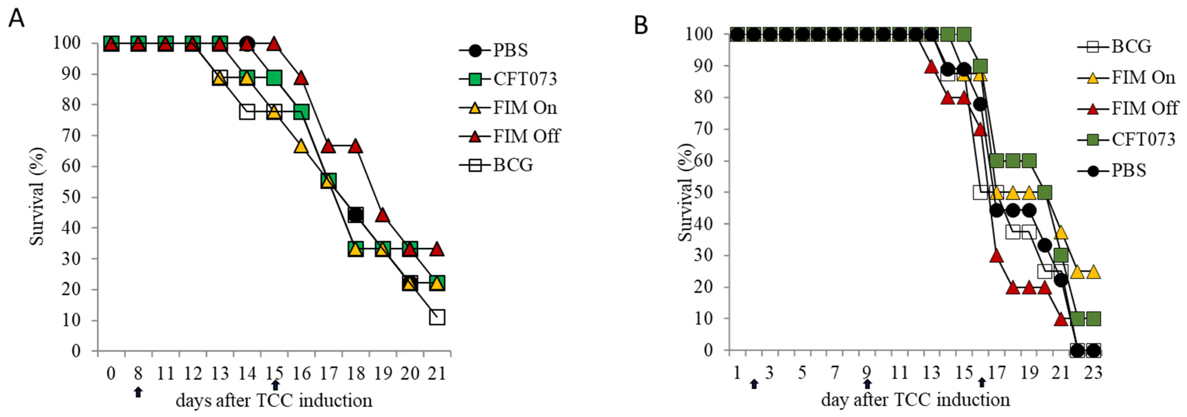 2.5. Inactivated UPEC Demonstrates Equivalent Efficacy to BCG and a Superior Safety Profile in the AY-27 Rat Bladder Cancer Model