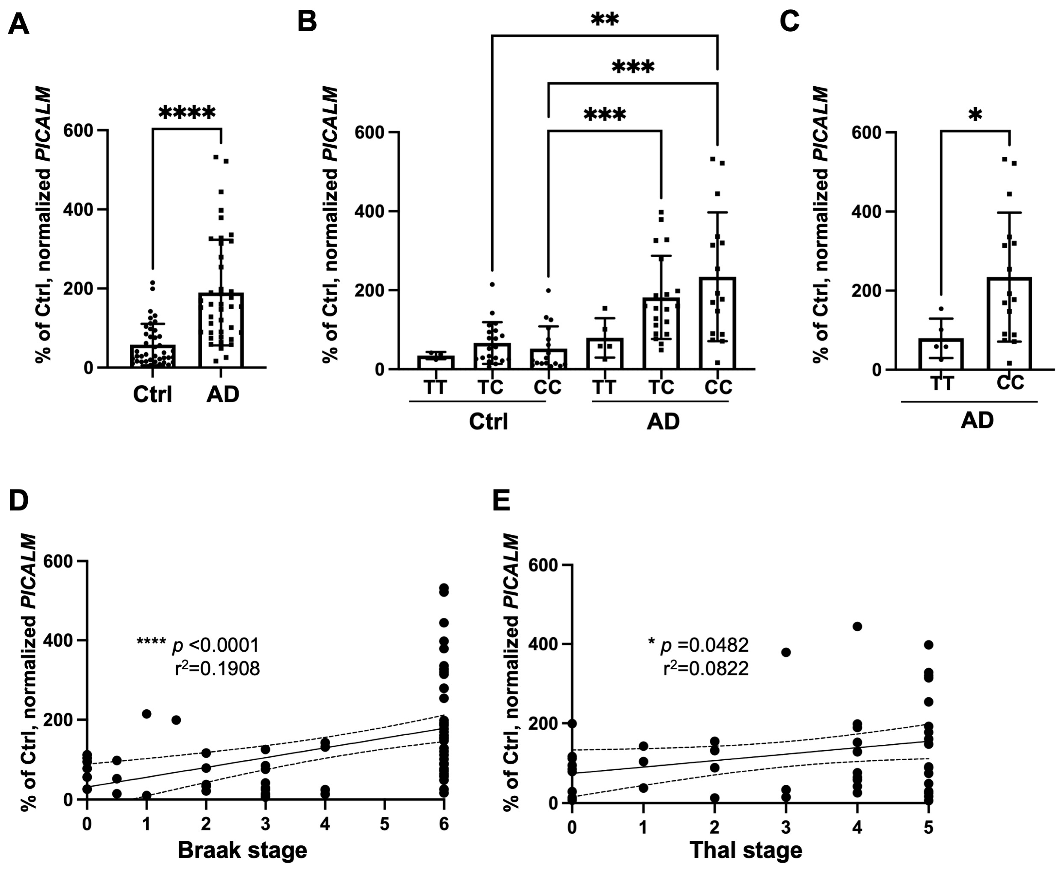3.1.1. Expression of PICALM mRNA Is Increased in Human AD Brains Compared to Non-Demented Control Brains