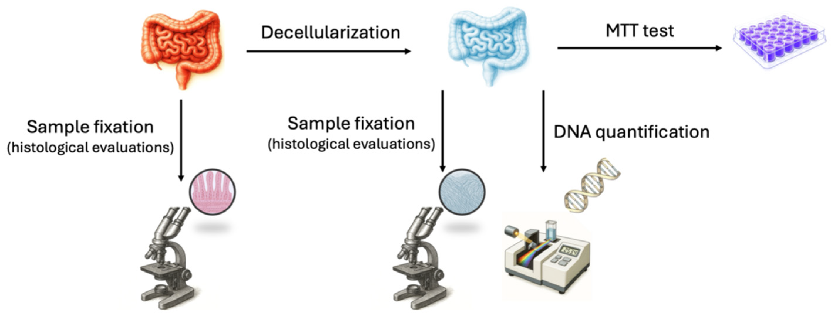 - Lin, S.; West, G.; Wang, J.; Mao, R.; Prasad, A.; Banerjee, S.; Mukherjee, P.K.; Rieder, F. Protocol for the Decellularization of Human Intestinal Tissue from Patients with Inflammatory Bowel Disease. STAR Protoc. 2025, 6, 103829. [Google Scholar] [CrossRef] [PubMed]