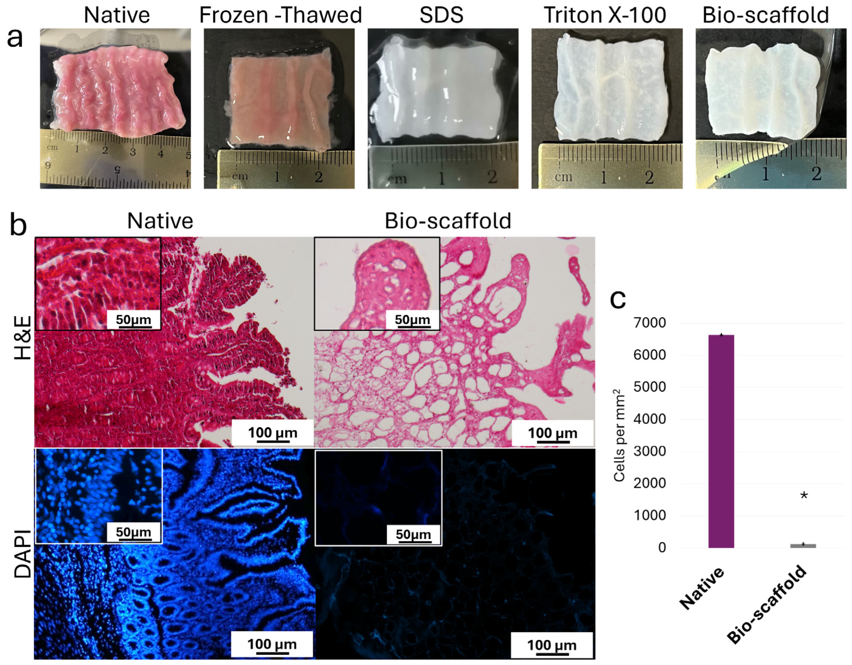 3.1. Creation and Characterizatiojn of Decellularized Intestinal Bio-Scaffolds