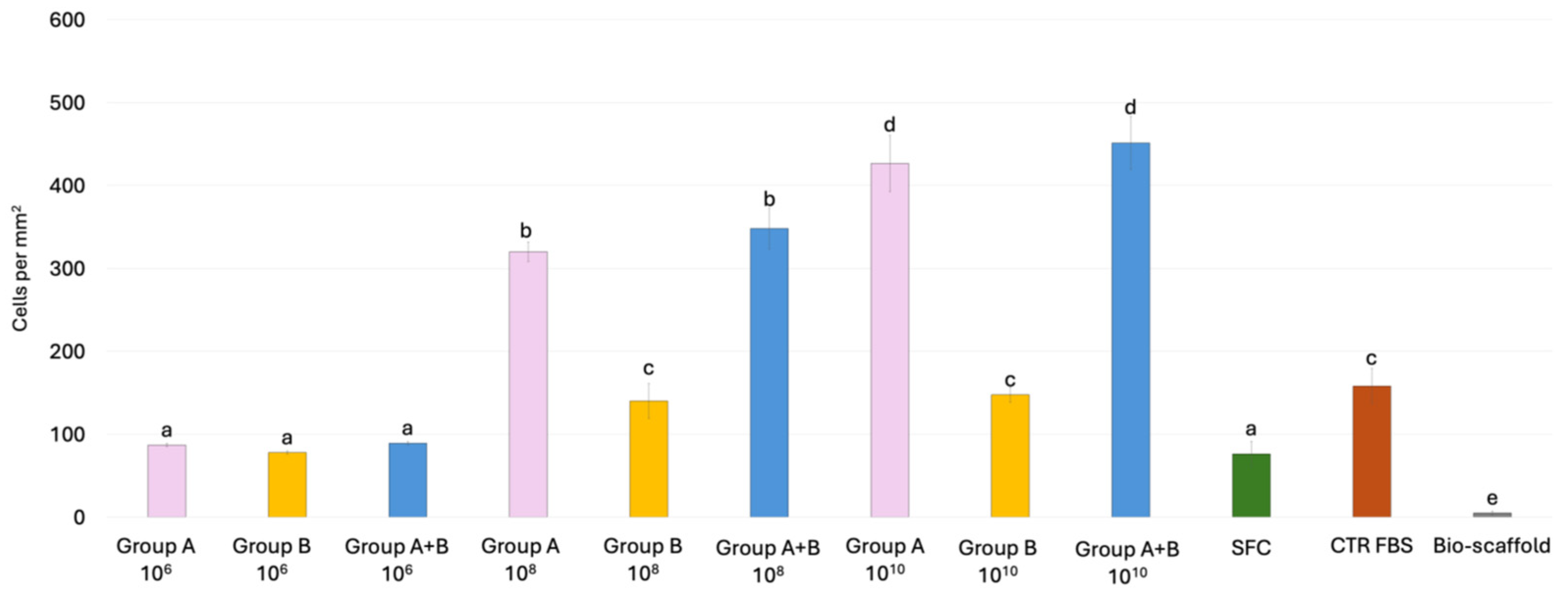 | Pre-conditioned bio-scaffolds (Group A) | 106 MEVs | 67.5 | 1.1 |