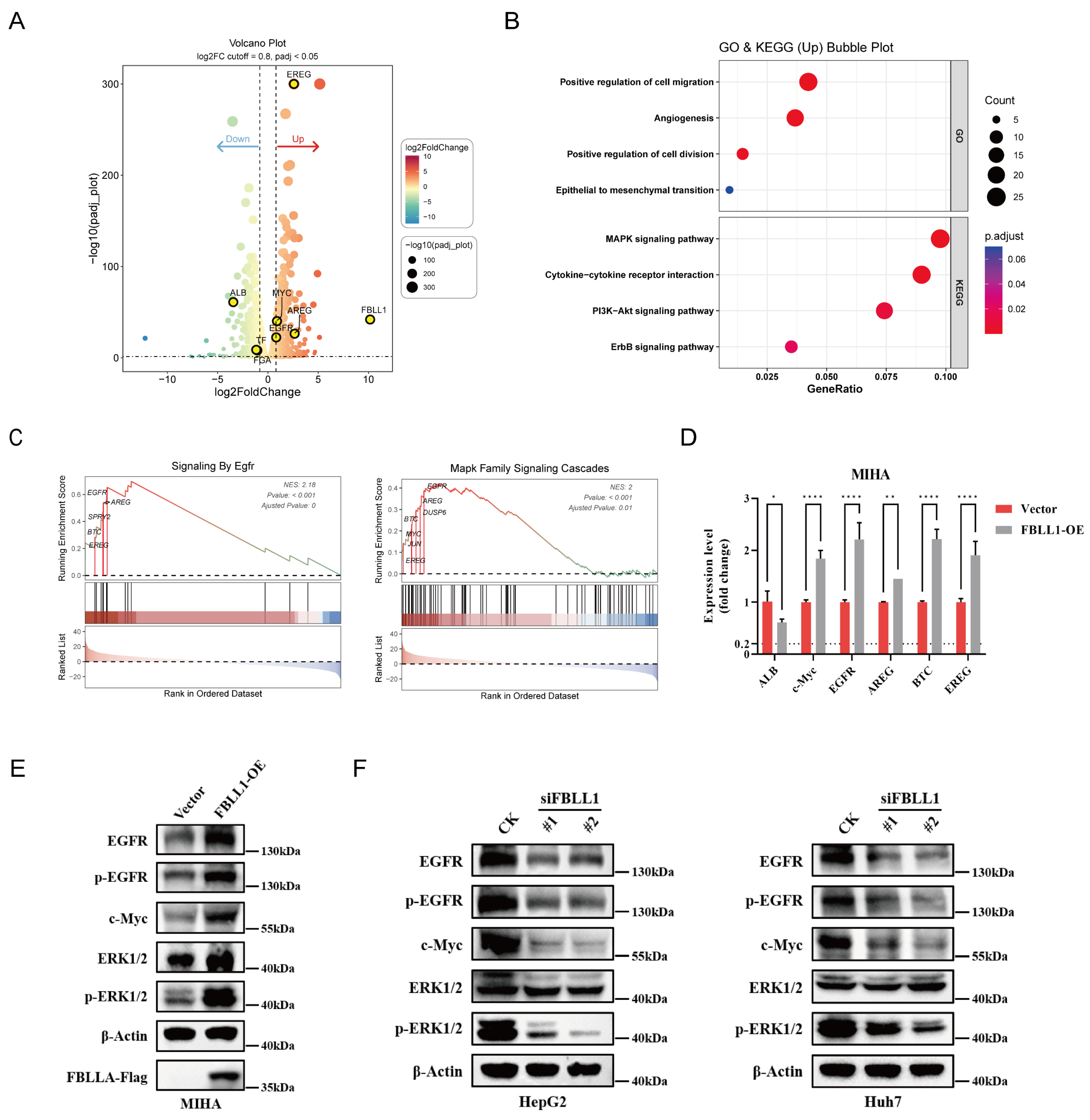 Figure 5D). Also, c-Myc abundance and increased phosphorylation of EGFR and ERK1/2 in FBLL1-overexpressing cells at the protein level, (