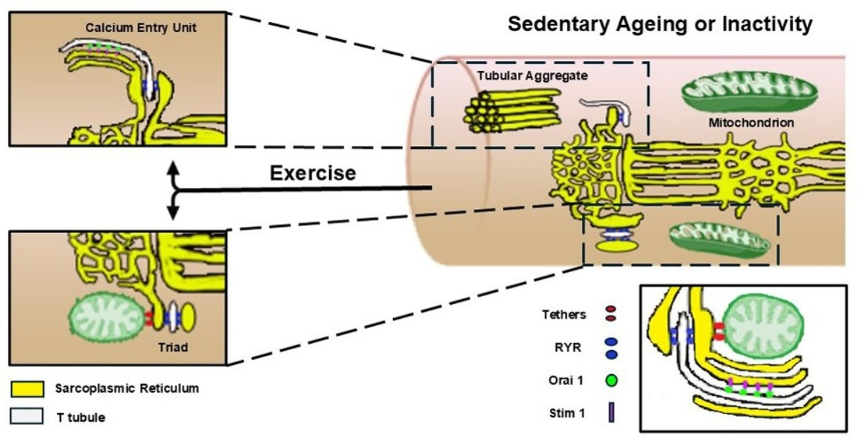 3. Sedentary Aging Compromises the Architecture of Mitochondrial Network and Sarcotubular System
