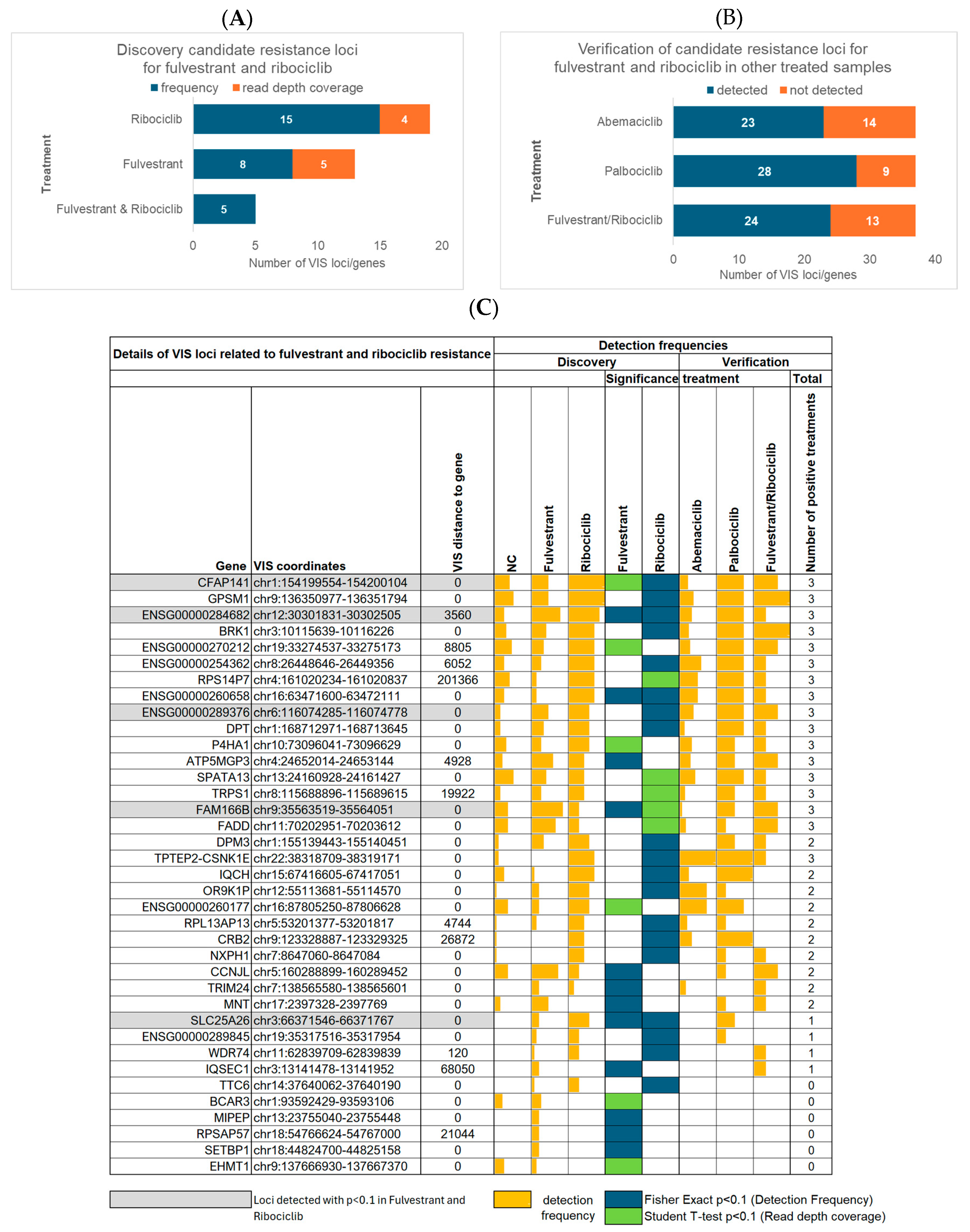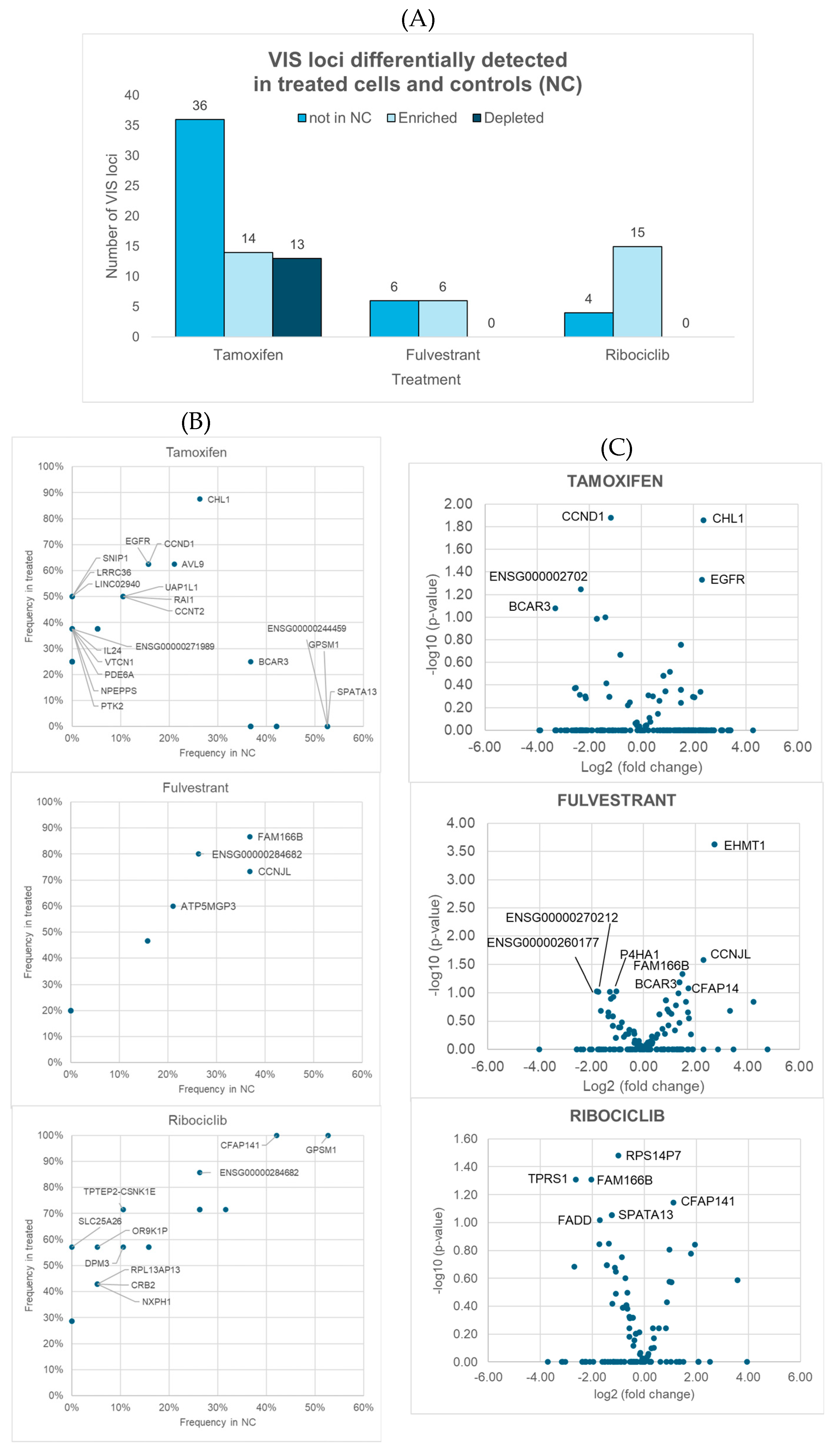 3.3. Identification of VIS Loci Enriched or Depleted in Therapy-Resistant Cells