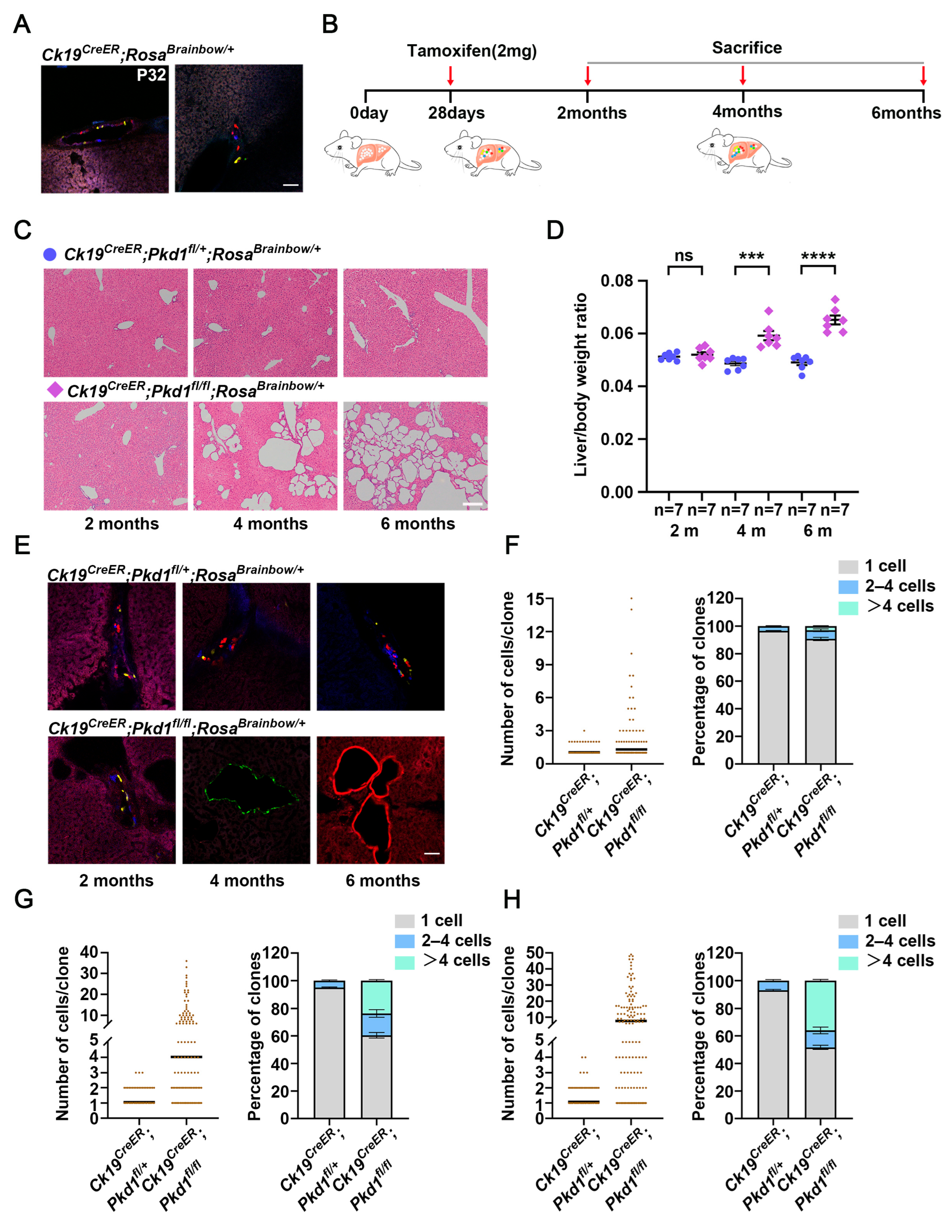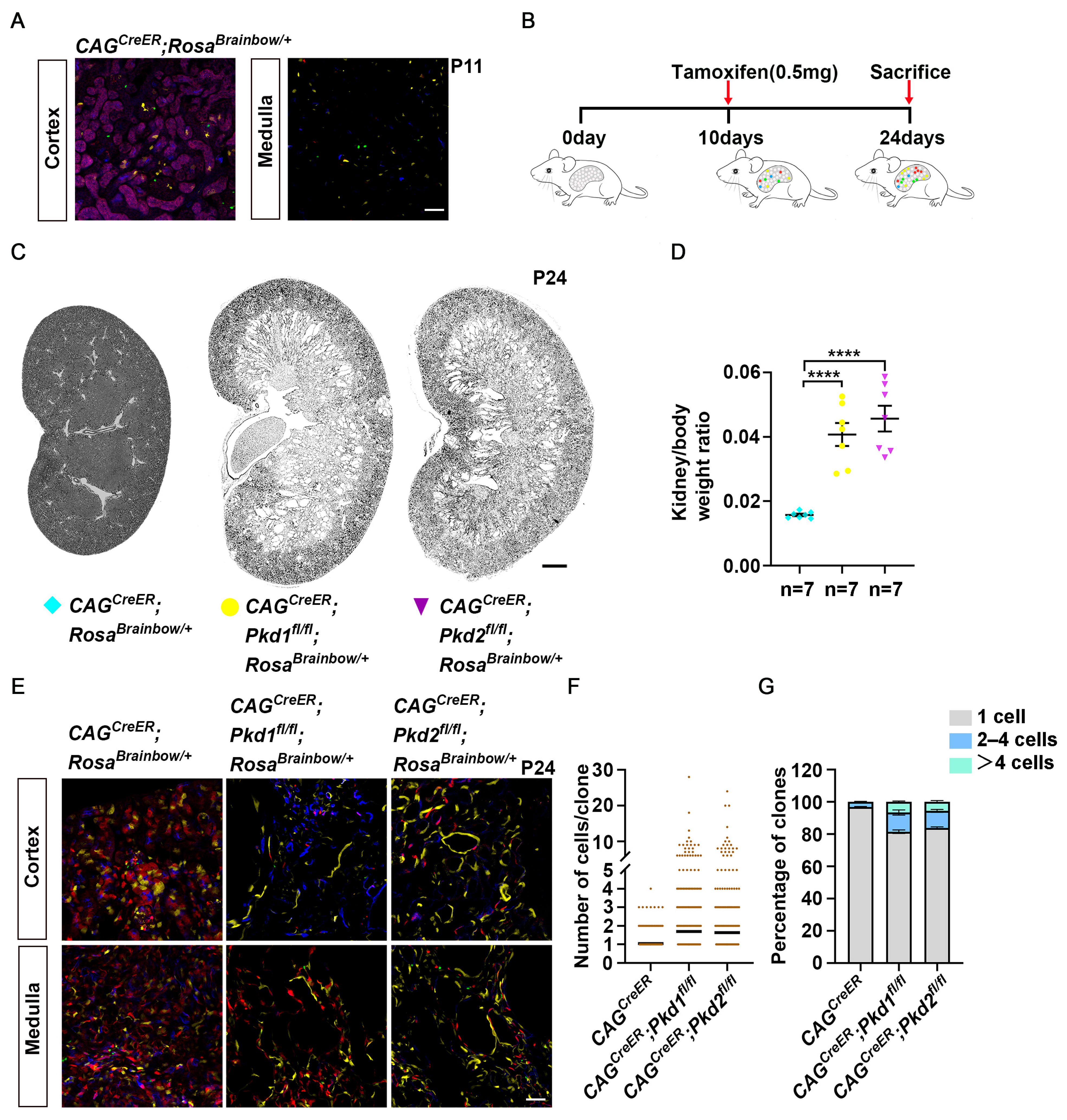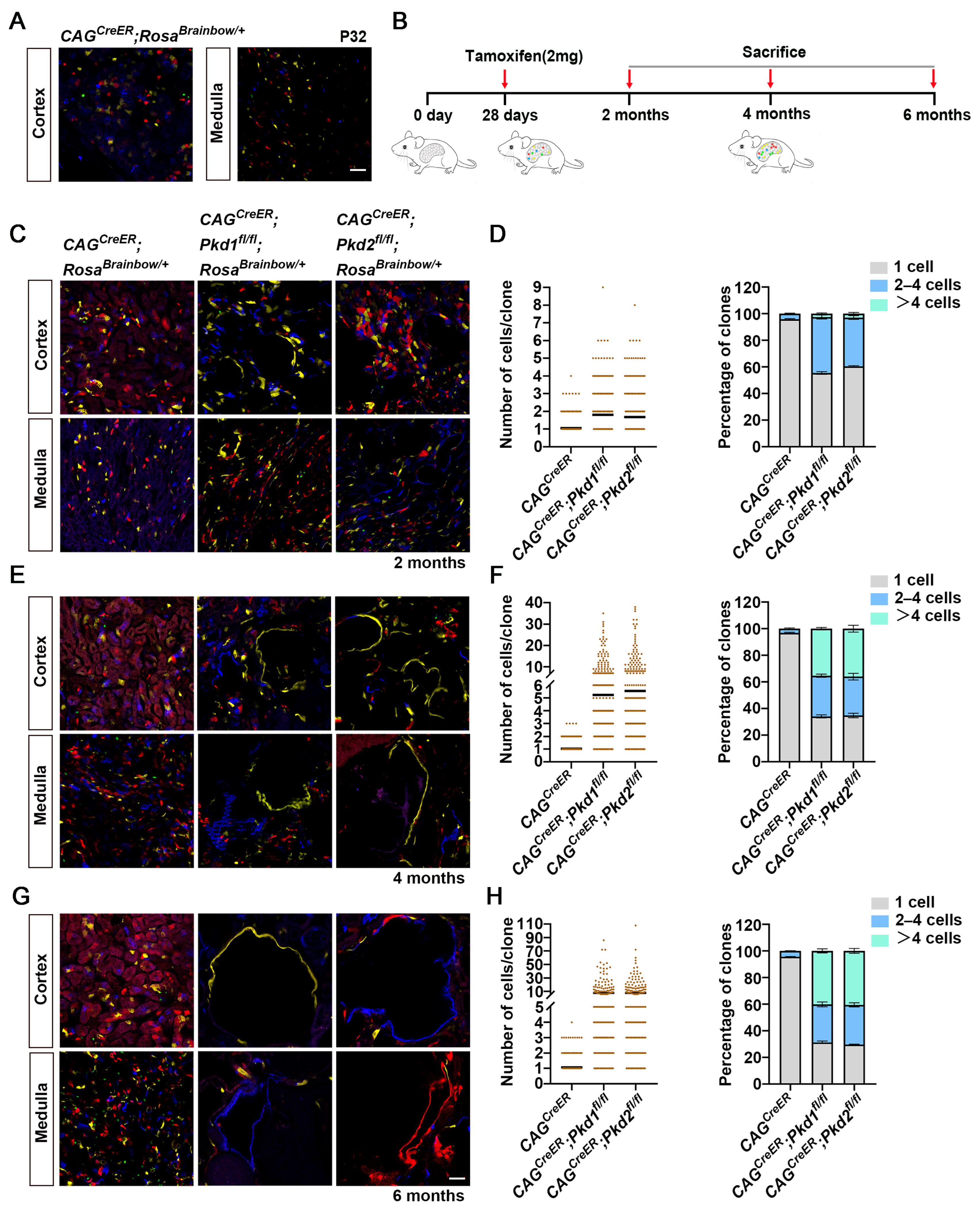 3.2. Lineage Tracing Individual Renal Epithelial Cells During Cyst Formation in Adult-Onset Models of ADPKD