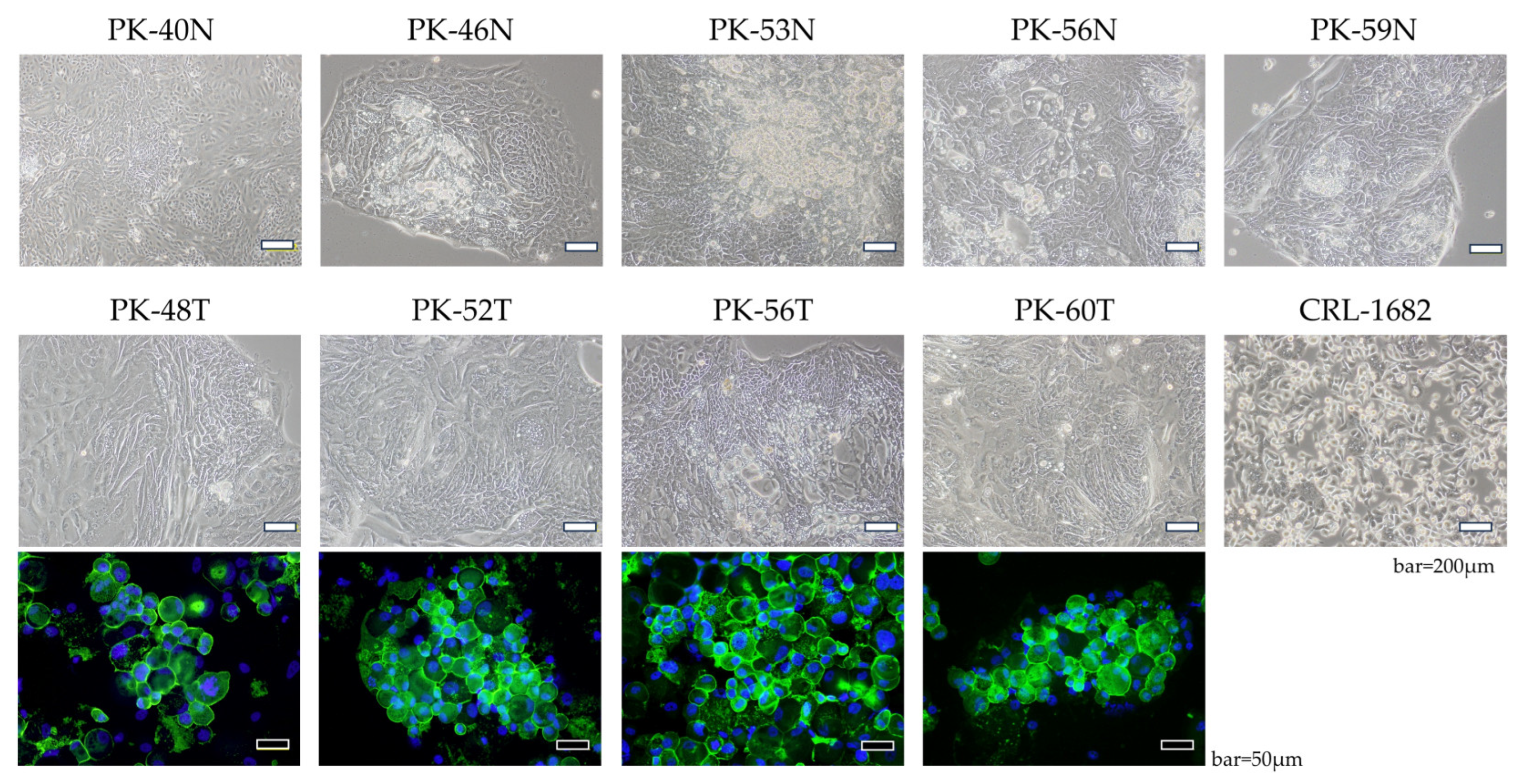 3.2. Morphological Characterization and Epithelial Marker Expression in Established Primary Cells