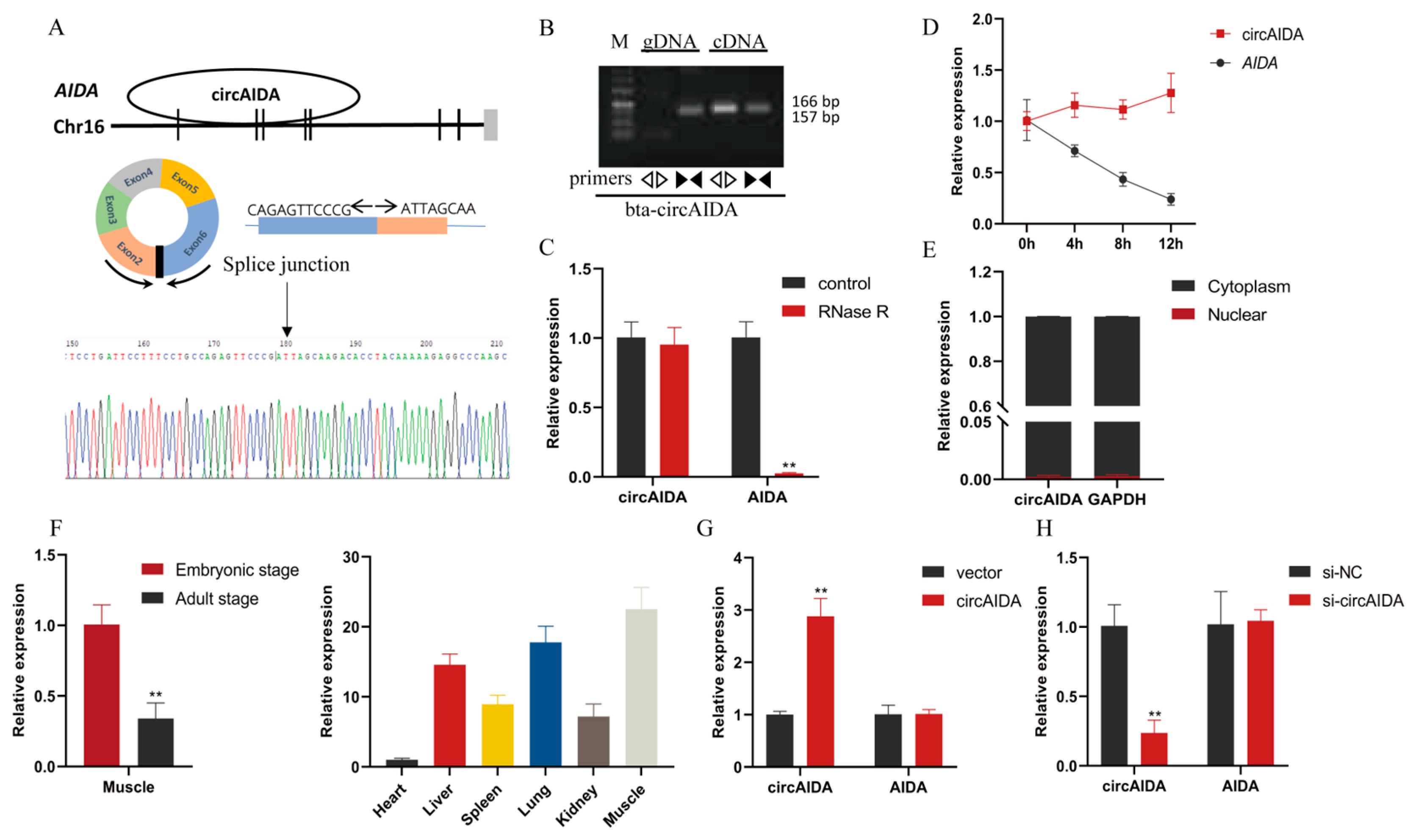 3.1. Identification and Expression Pattern of Bovine circAIDA