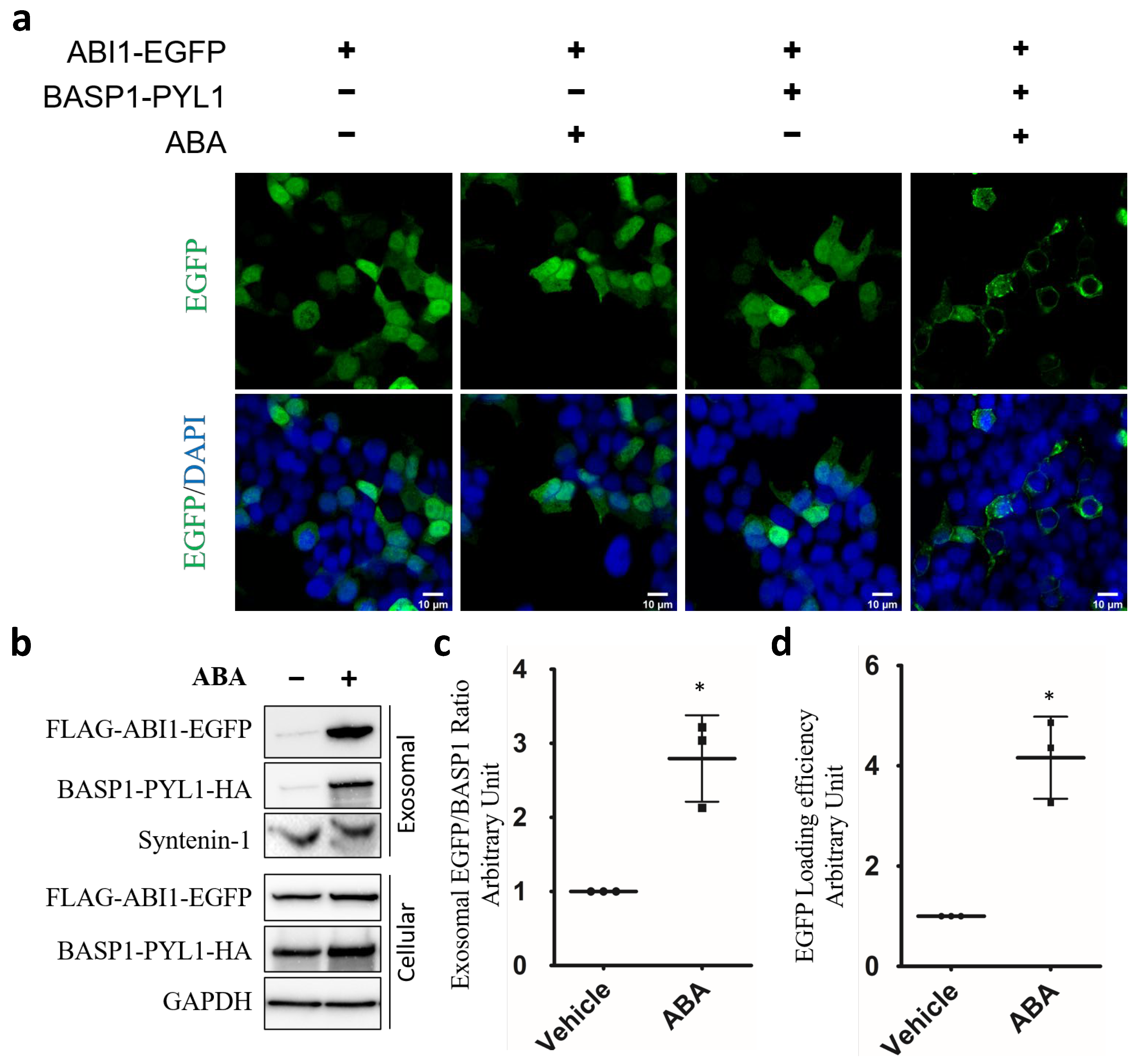 - Among the engineered scaffolds, the BASP1–PYL1 fusion proved most effective, enabling robust, ABA-dependent protein loading into EVs.