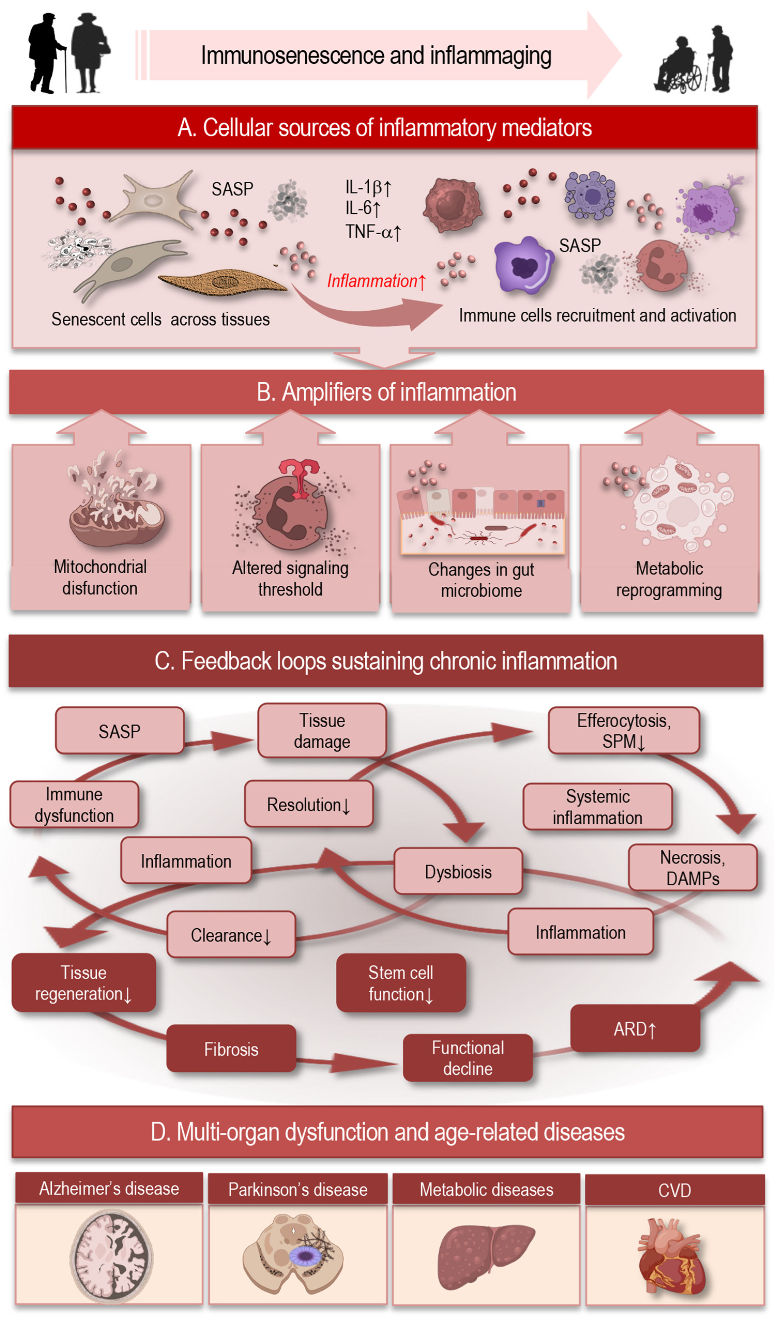 3. Inflammaging: Sources, Amplifiers, and Feedback Loops