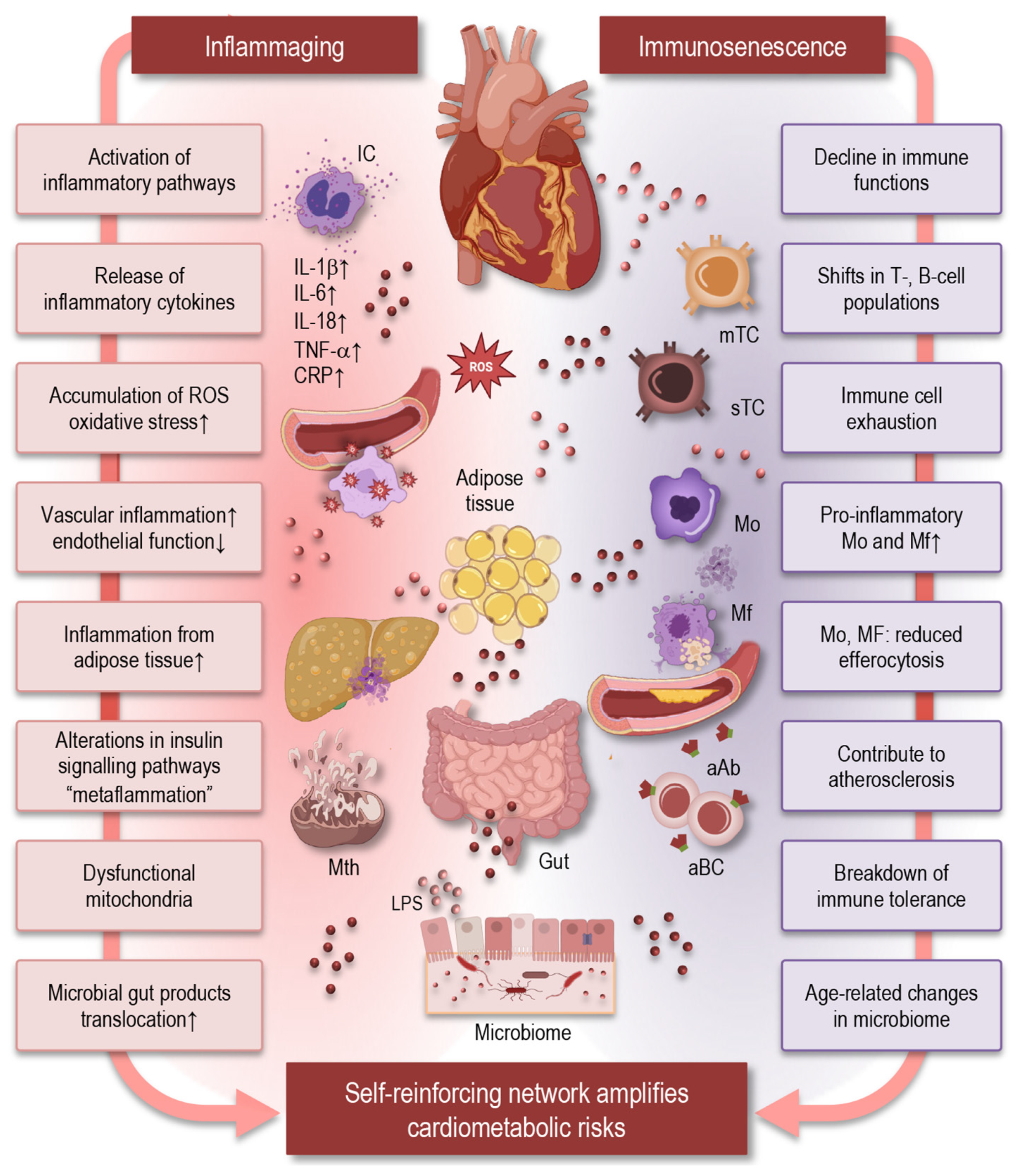 - Müller, L.; Di Benedetto, S. Inflammaging, immunosenescence, and cardiovascular aging: Insights into long COVID implications. Front. Cardiovasc. Med. 2024, 11, 1384996. [Google Scholar] [CrossRef]
