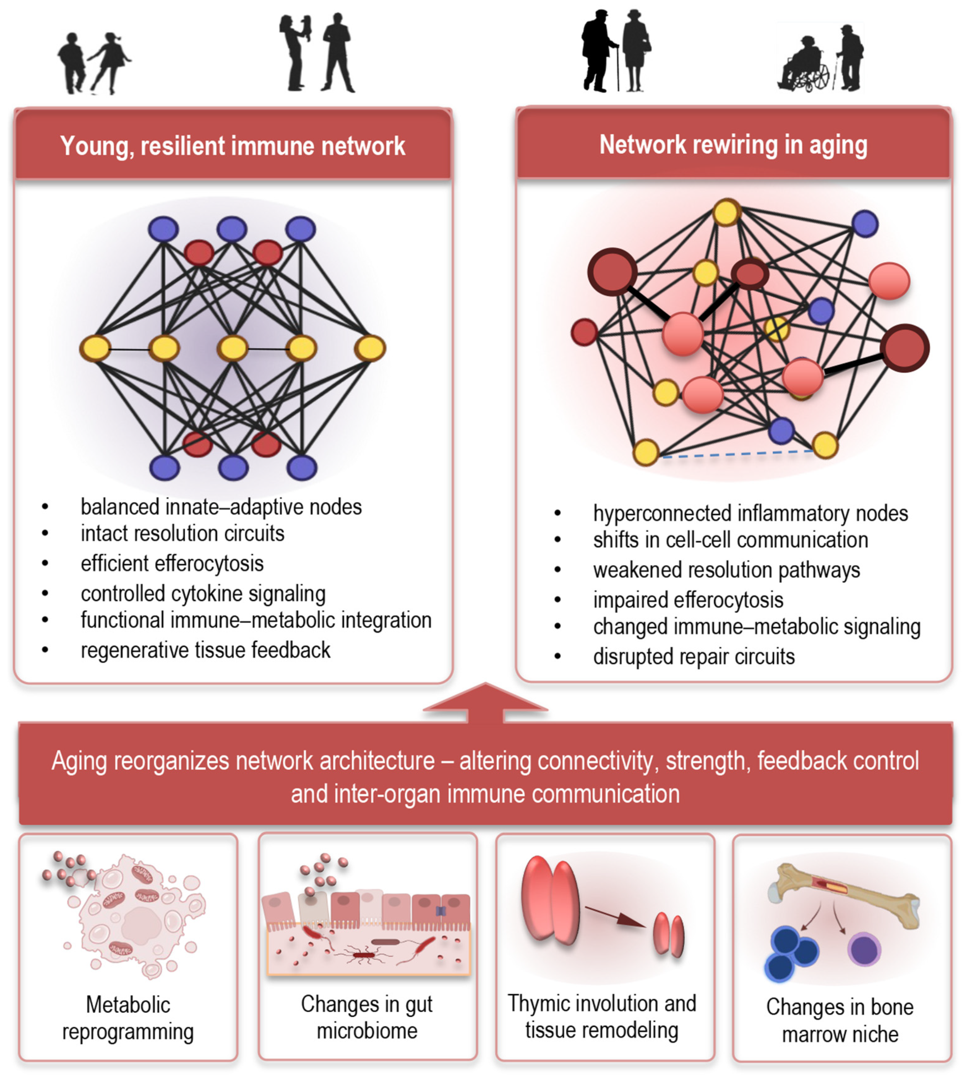 Network Rewiring in the Aging Immune System: From Chronic Inflammation to Age-Related Pathologies