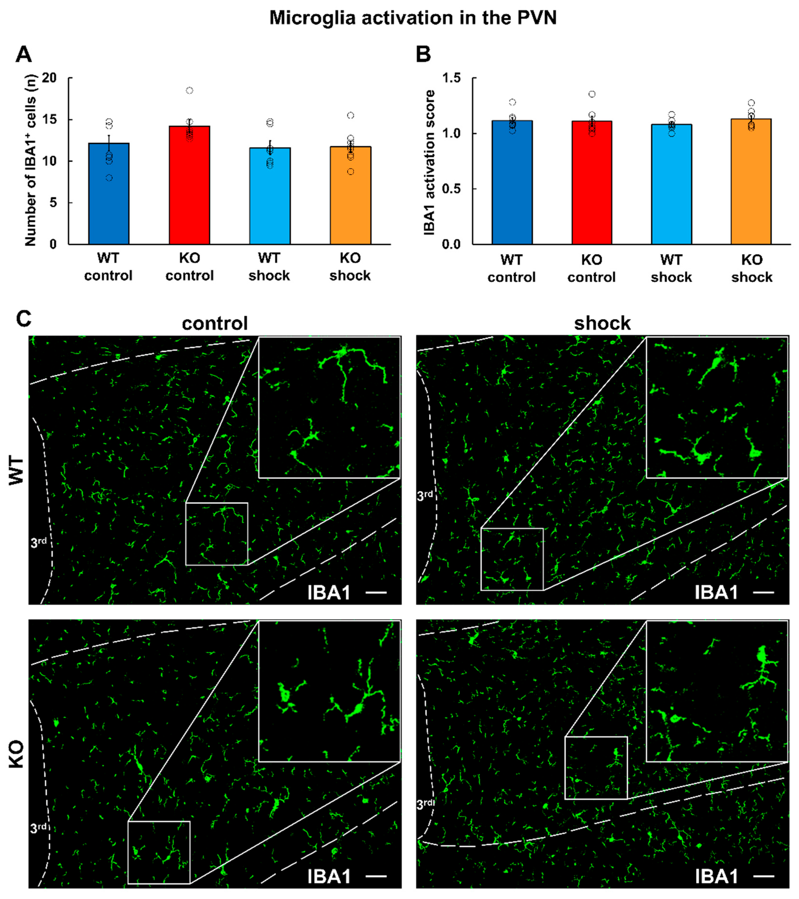 2.5.2. Immunohistochemistry on Glial Markers in the Paraventricular Nucleus of the Hypothalamus (PVN)