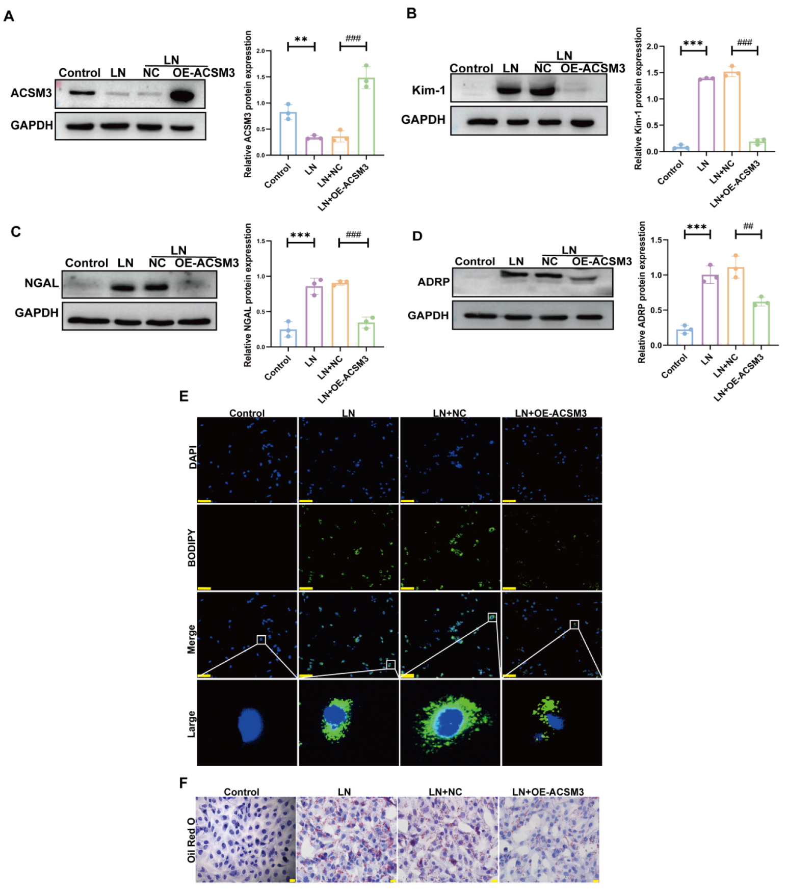 3.4. Specific Overexpression of ACSM3 Expression in Renal Tubular Epithelial Cells Alleviated Renal Tubular Injury In Vivo and In Vitro